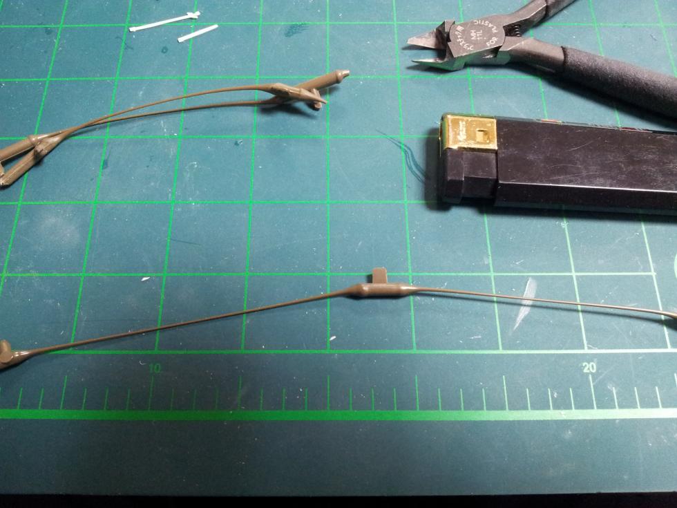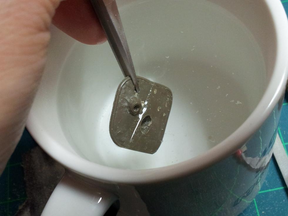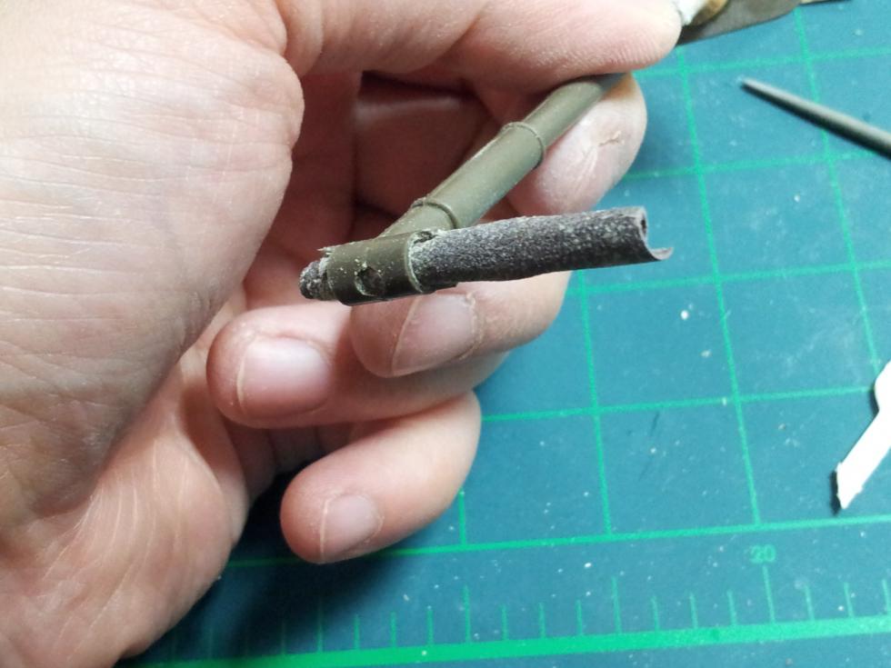 자 이제 본격적인 포방패 작업에 들어가기 전에 런너를 늘여서 준비합니다. 너무 얇으면 안되고 1mm 굵기로 준비해 줍니다. 어디 쓰냐 하면 포방패의 외곽 방수포의 재현 등에 쓰여지며, 특히 포방패를 너무 갈아내서 모양이 어색할 때도 수정용으로 씁니다..