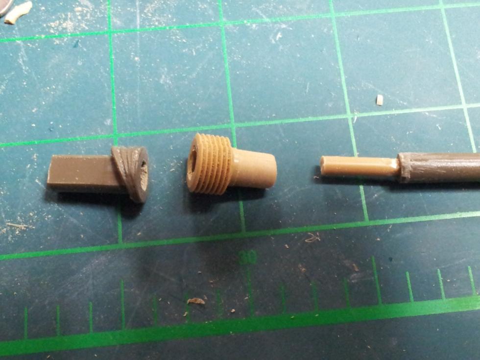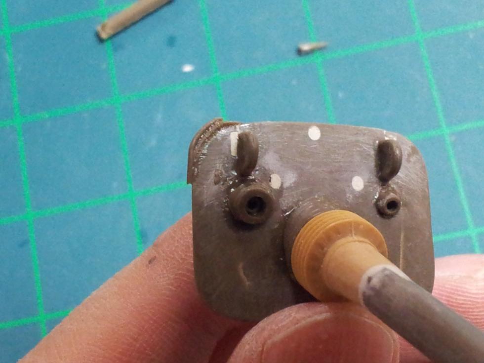 타미야의 큐폴라 아랫부분에 플라판을 덧대어 보충해주고 퍼티로 다듬어주고요~ 아랫부분은 타미야의 부품에서 결합부만 잘라내고 접착해 준 모습입니다.. 틈이 많이 생기므로 플라판을 안에 덧대어 접착하면 딱맞습니다.. 그리고 큐폴라가 끼워지는 포탑 결합부에는 아카의 것과는 달리 타미야에는 턱이 4개가 있으므로 미리 제거해 주어야 합니다..