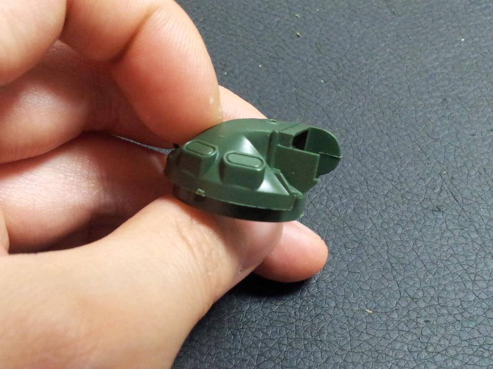 작업하다 보니 과하게 우측 귀퉁이가 갈려서 런너로 보수하고 있는 모습입니다.. 무수지로 접착하여 완전히 굳은 뒤 니퍼로 잘라내고 사포등으로 모양을 다듬구요, 빈틈은 나중에 방수포 전체를 퍼티로 발라줄 것이니 나중에 다 수정할 것입니다.. 머리의 뿔같은 돌기는 킷트의 것을 이용하되 아랫단을 1mm 정도 잘라내고 크기를 줄여서 붙인 겁니다. 접착위치도 원래 붙여야 하는 홈에서 안쪽으로 들여서 붙이는 것이 좋다고 생각됩니다 ('0' )