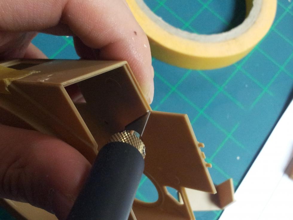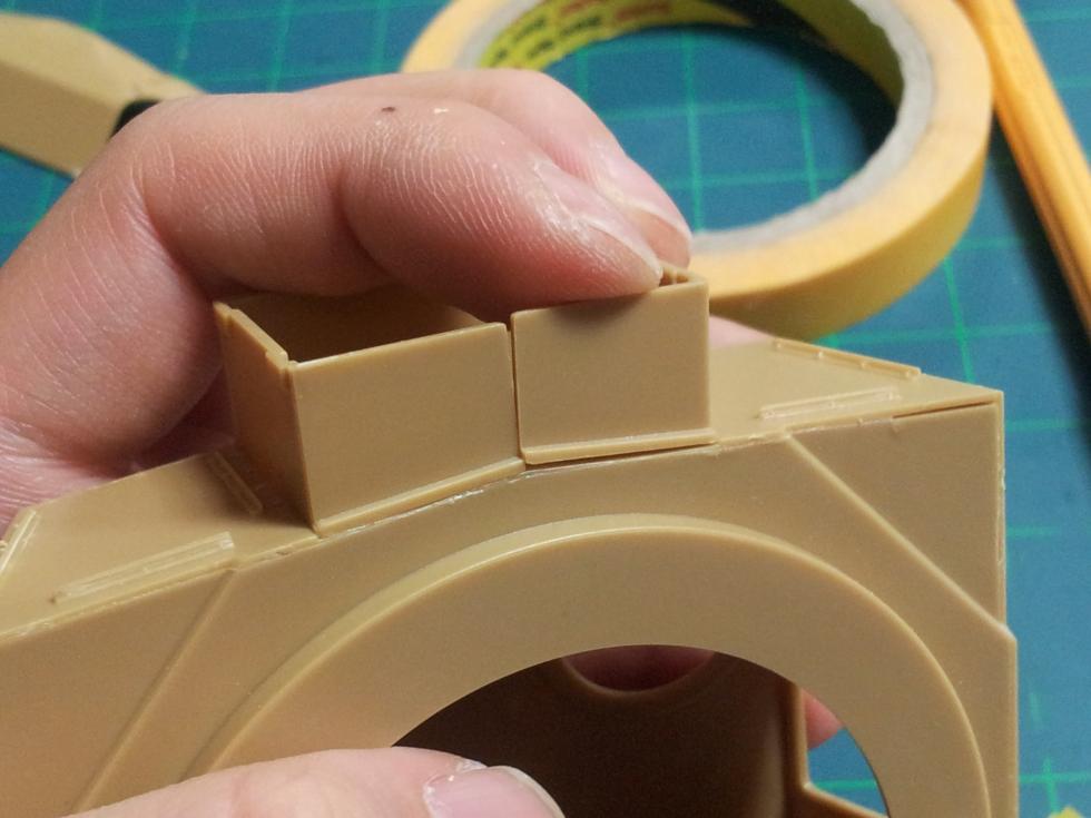 포탑 후면 덮개(?)를 가조립해보니 약간 안맞아서 뜨는 부분이 생깁니다.. 그래서..