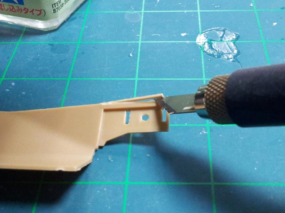 전면 장갑판의 턱 윗부분을 약간 잘라내는 모습인데요, 이 방법 보다는...