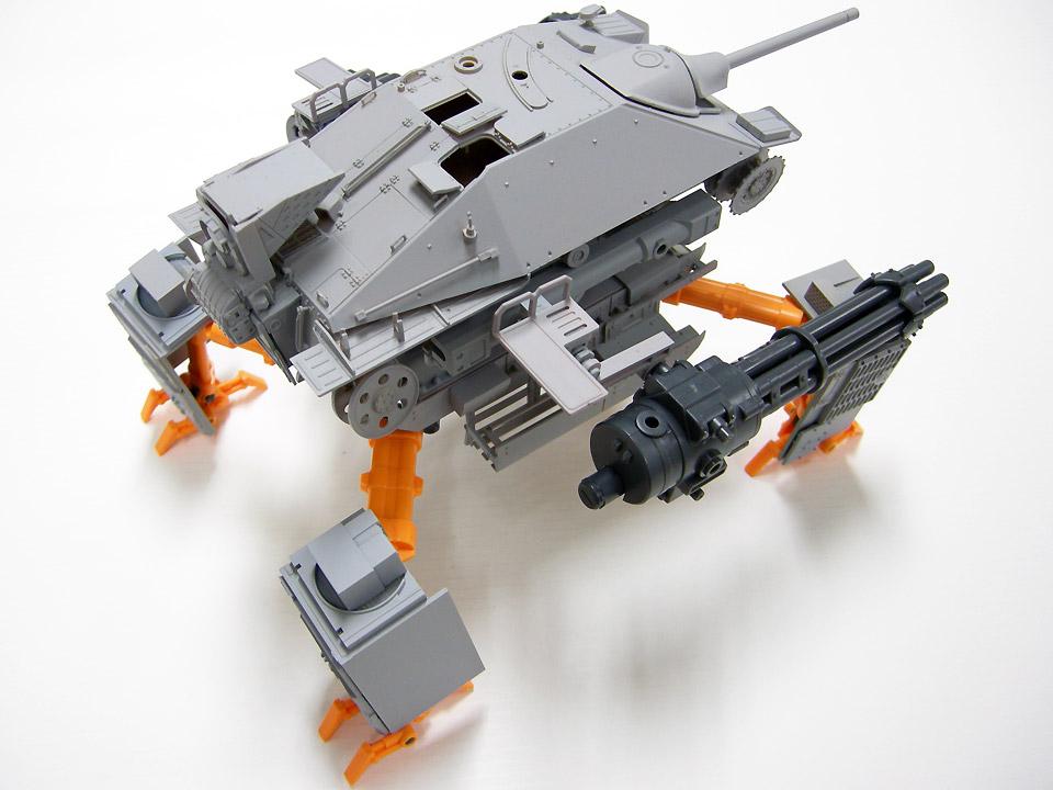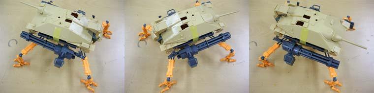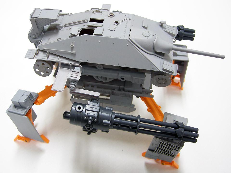 로드휠을 빼버리고 그 자리에 개틀링포를 장착하여 이동중에서 발포가 가능하도록 해줬습니다.