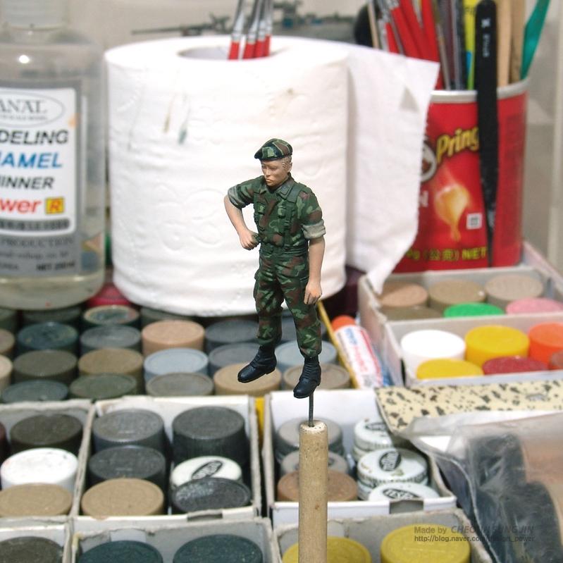 그리고 밑에 사진은 작업중인 베레모타입의 한국군 전차병 (윈드마크 헤드 + 아카데미 바디) 역시 도색중입니다.