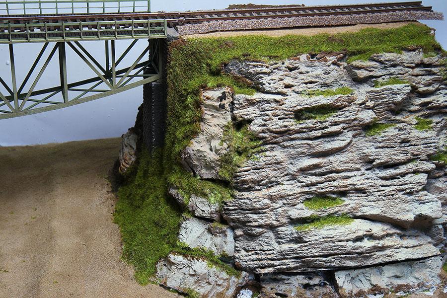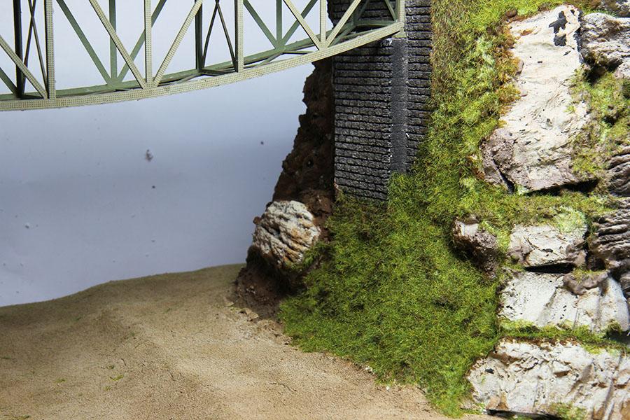 조소냐 아크릴 로 땅색 으로 만들어 전체적 으로 페인트 붓 으로 칠한 다음 Noch 잔디 2.5mm 낮은 잔디 로 바위 주변 의 풀지대 를 만들어 주었습니다.
