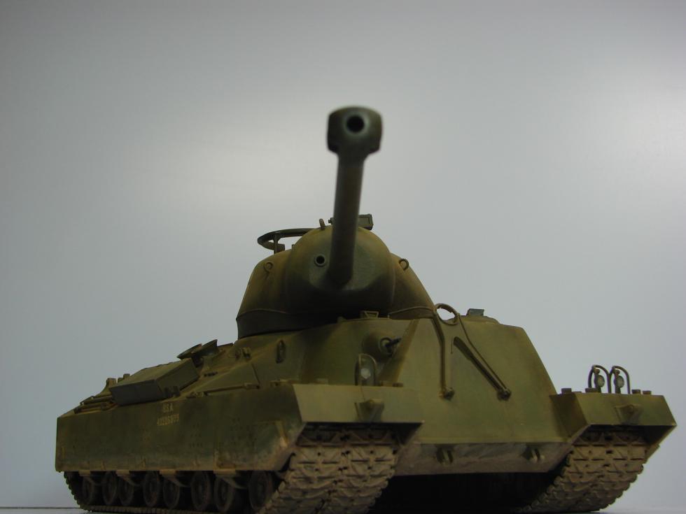 결국 부랴부랴 다 만들어놓은 차체에 수정작업이 들어갔고...그 결과, 차체 앞쪽이 좌우로 불룩 튀어나오고 말았습니다. 처음에는 차체에 조종수만 타는 걸로 계획했다가 "그래도 미군 전차인데 셔먼의 전통은 이어야지. 어차피 불릴 거, 좌우 다 불리면 되잖아."라는 생각을 뒤늦게 하고 좌우를 불린 것 까지는 그렇다고 치고...거기에서 조종수 자리에 그냥 차체 해치 대신 전차장용 큐포라를 다는 삽질을 또 하고 말았습니다. 원래 T-28이 조종수석에도 전차장 큐포라가 달린다는 이유로요. 그래서 차체 전면이 좌우 비대칭이 되고 말았습니다.
