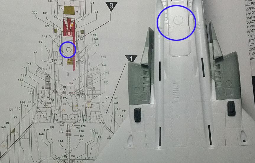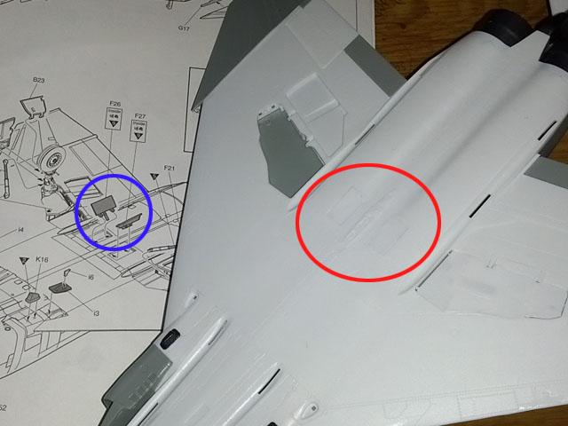 설명서대로 부품 F27을 떼어 설명서대로 동체 오른쪽에 덮어보니 단차가 심하게 나더군요. 반대로 해보니 단차없이 잘맞습니다.