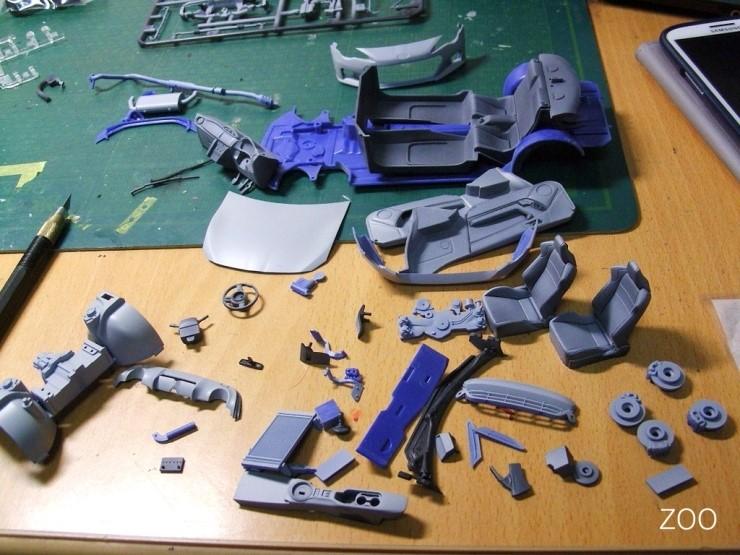 그리고 다듬기. 자동차 모형은 1/24 스케일의 경우 부품이 적어서 몇시간만 있으면 금방 다듬을 수 있습니다.