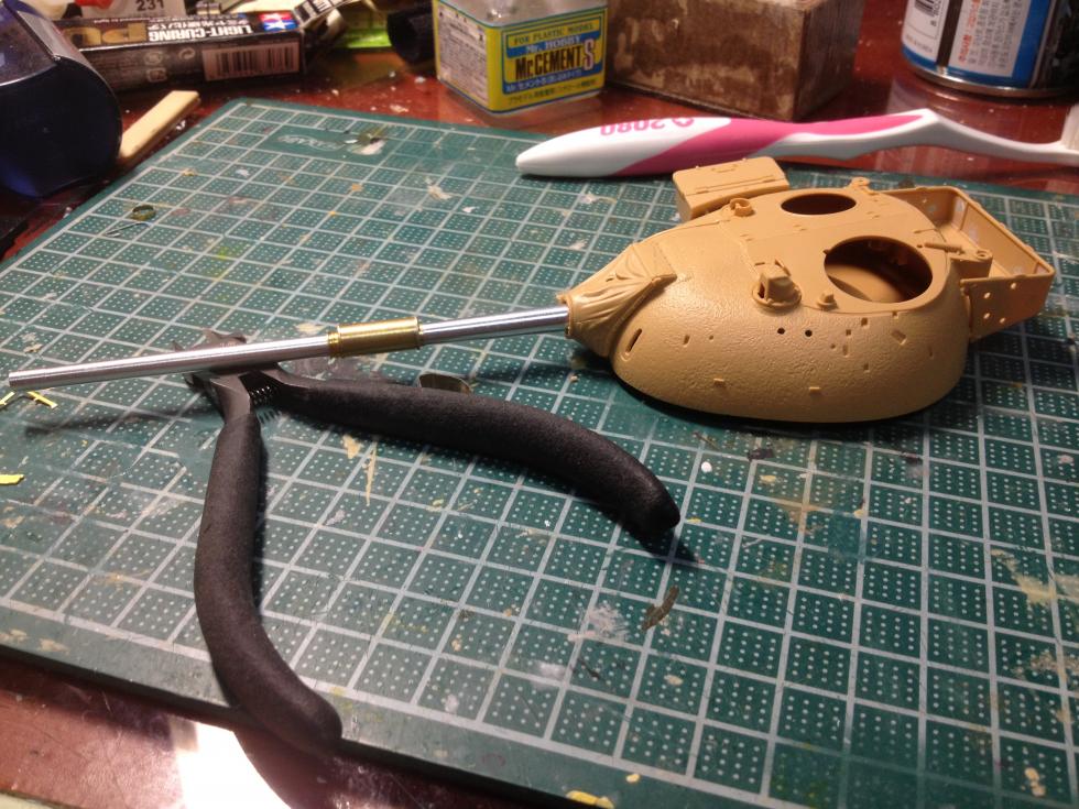 포신은 알루미늄이라 줄로 깎아서 배연기를 좀 뒤로 밀었습니다. 배연기 뒤쪽의 테는 에칭쪼가리를 잘라서 붙여주었고요. 좀 가는 느낌이 있지만 알 수는 없고 여튼 뽀대는 나보입니다. 칠하면 어차피 똑같겠지만요