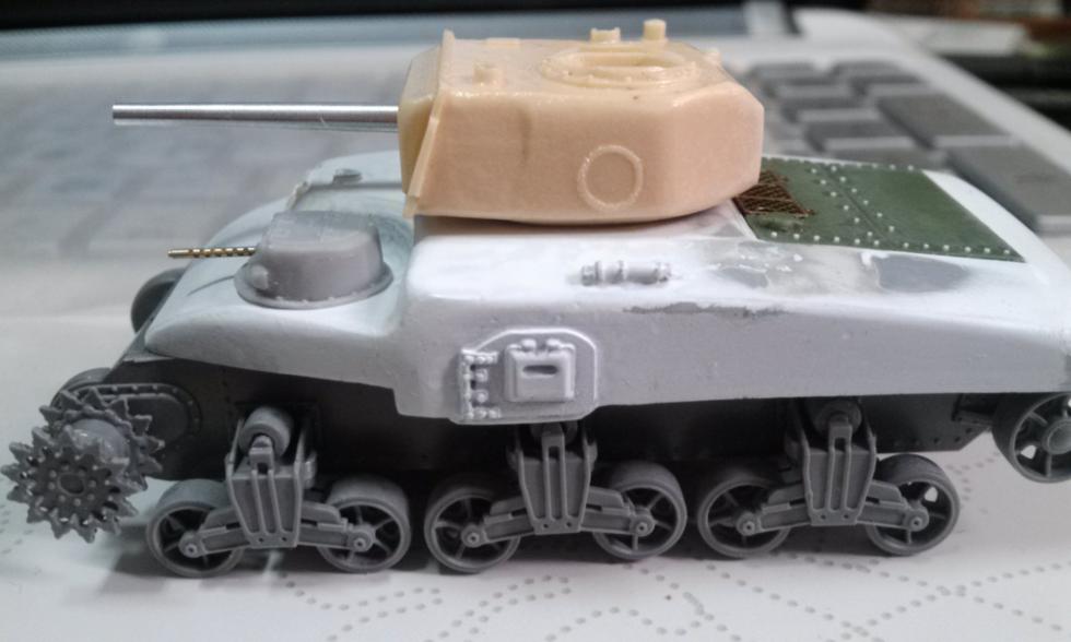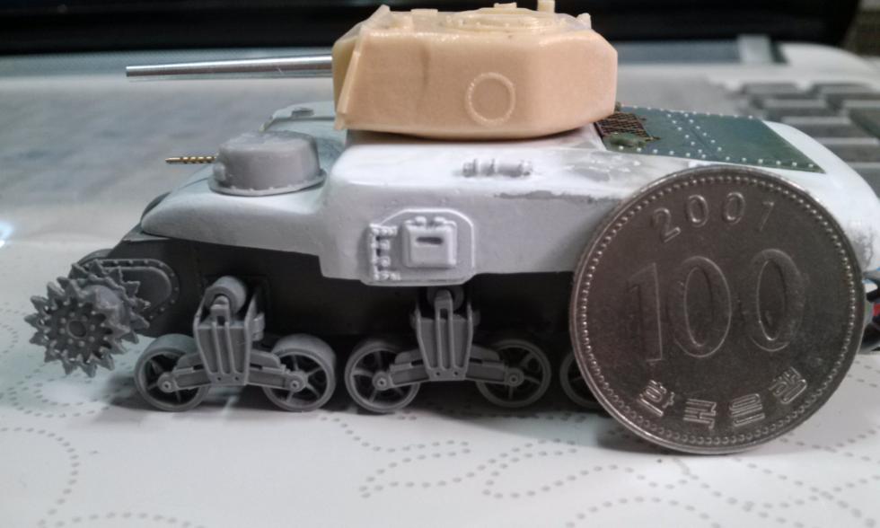 미라지하비 M3 Lee의 하부와 소총탑, 개인 제작자가 제작한 메이커없는 캥거루/ 램전차의 레진상판/레진포탑 UM셔먼부품 RB모델 포신 마스터모델 총신을 사용했습니다.