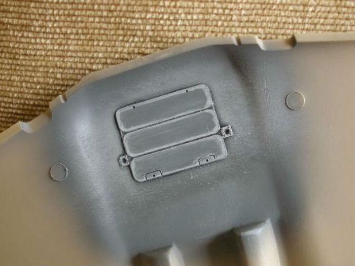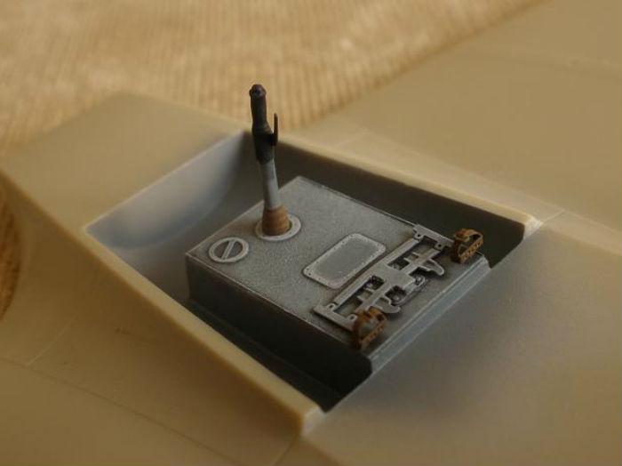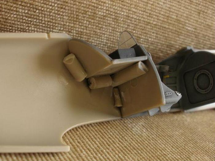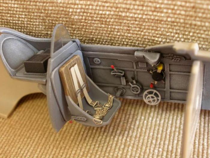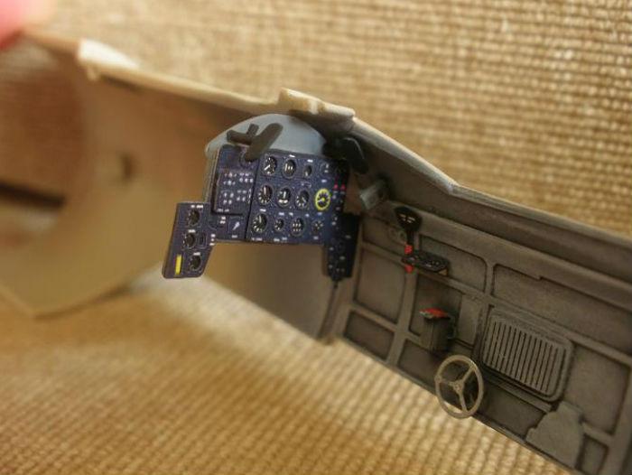 완성후 밑에서 잘보이는 부분으로 꼼꼼히 칠해 줍니다. 조종석의 페달과 조종간 손잡이는 에칭으로 만들게