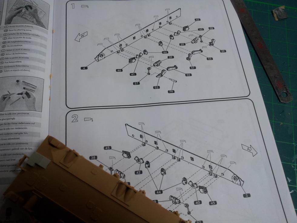 먼저 설명서를 두어번 어보고 미리 조립에 감을 잡은 뒤 순서에 개의치 않고 조립을 합니다.. 미리 조립했다가 전체적인 조립상황에 문제 발생할 부분은 미리 검토하여 조립 순서를 임의로 결정했습니다.. 하체는 서스펜션 부품을 먼저 조립하기 보다, 하체를 다 조립하고 상판에 잘 맞나 맞춰보고 나서, 하체를 조립하였습니다.. 설명서는 좀 어려워 보이는 편이죠? ('0' )