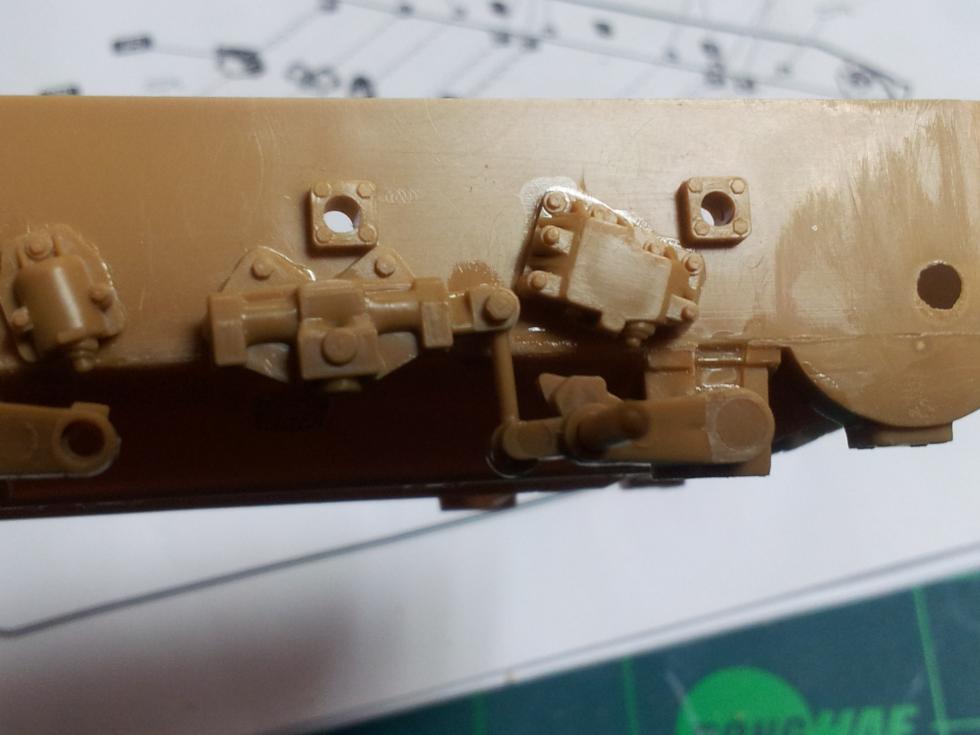 차체 하부에는 추가된 레진부품이 있는데 부착위치에 있는 몰드는 싹 밀어내야 합니다.. 설명서에는 그냥 갖다 붙이라고 되어 있지만 그러면 안되죠~~ ('0' )