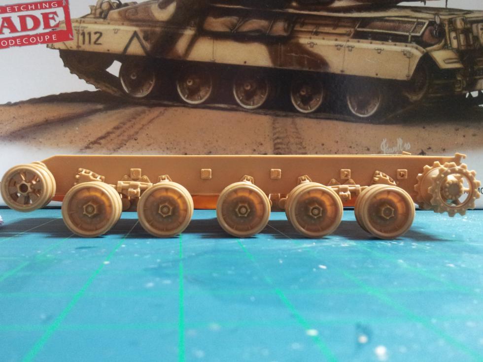 바퀴는 큼지막한데 갯수가 많지 않아 조립과 다듬기는 금방이네요 ('0' ) 요즘 전차는 로드휠이 6~7개인데, AMX는 5개입니다 ㅎㅎ ('0' )