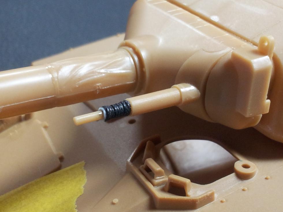조립 설명서에 지시된 동축 기관총 부품은 실사진과 좀 다르더군요.. 킷속의 다른 동축기관총이 하나 더 있는데, 그게 더 맞습니다..(위 사진) 아코디언 주름 같은 부분은 마음에 들지 않아 런너로 한번 만들어 봤는데 별로네요 ('0' ) 결국 다 없애고 두툼한 동축 기관총 파이프만 남겨 놓고 조립했습니다..