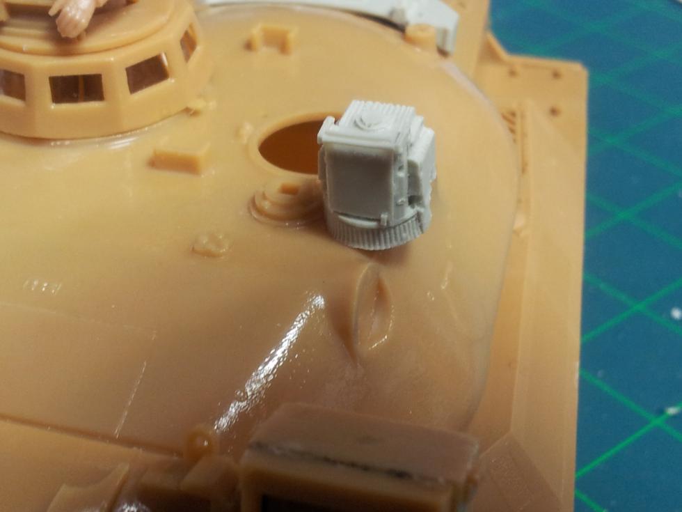 다음은 추가로 장착되는 센서류(?)같은 부품인데요, 설명서대로 포탑 상면의 안테나 돌기를 잘라내고 붙였습니다만 이상하죠? ('0' ) 실사진을 어렵게 찾아서 부착위치가 이게 맞는지 검토해 보았습니다.. 결론은, 저 레진부품은 약 1.5~2배 정도 오버사이즈라고 제 나름 결론지었습니다.. 실사진에서는 부착위치는 거의 맞는데 크기가 많이 작더라구요 ('0' )