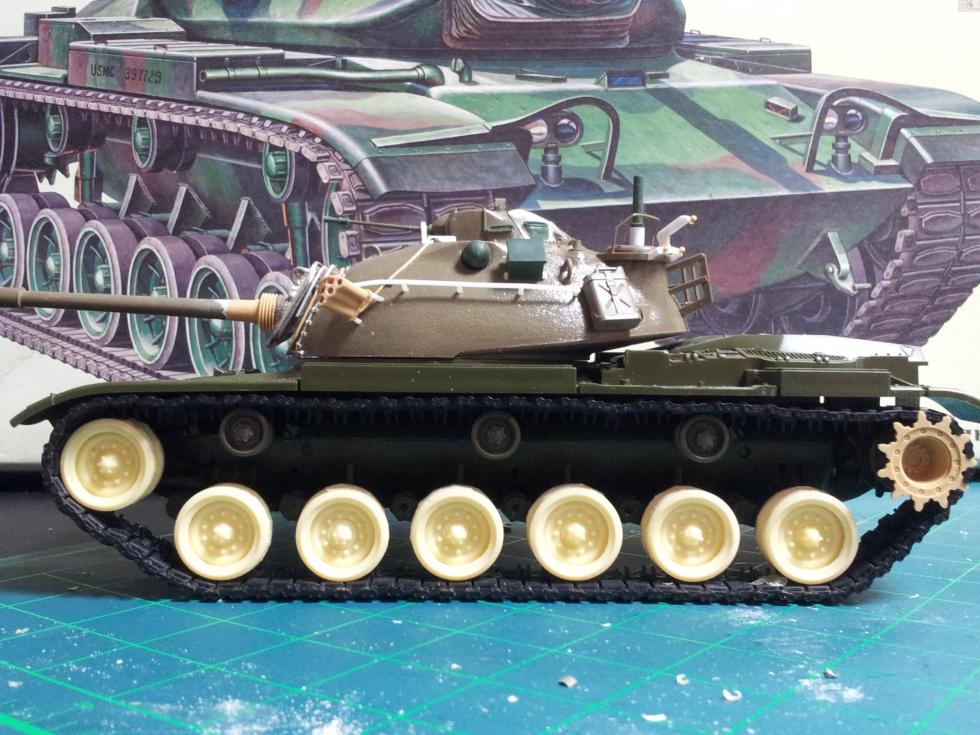 포탑은 전에 만들어서 진행중인 M48A3K의 포탑을 잠깐 빌려서 올려 주었습니다.. 105미리 포신 사양이 되어야 하지만 차체에 잘 맞나 올려본 것인데요, 다행히 위화감 없이 잘 맞는 편이고, 약간 헐거우므로 차체 내부 포탑 링에 플라판을 덧대어 주면 될 것 같습니다..