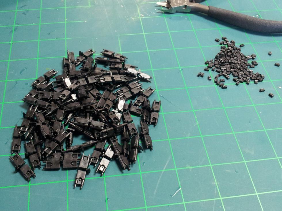 AFVclub 현재는 Defmodel 에서 판매하는 이 트랙은 조립도 간편하고 시간이 굉장히 단축됩니다.. 20~30분이면 한조 다 만듭니다.. 단순노동이기에 몰아서 하려고 다 잘라내고 하나씩 연결해 줍니다 ('0' )