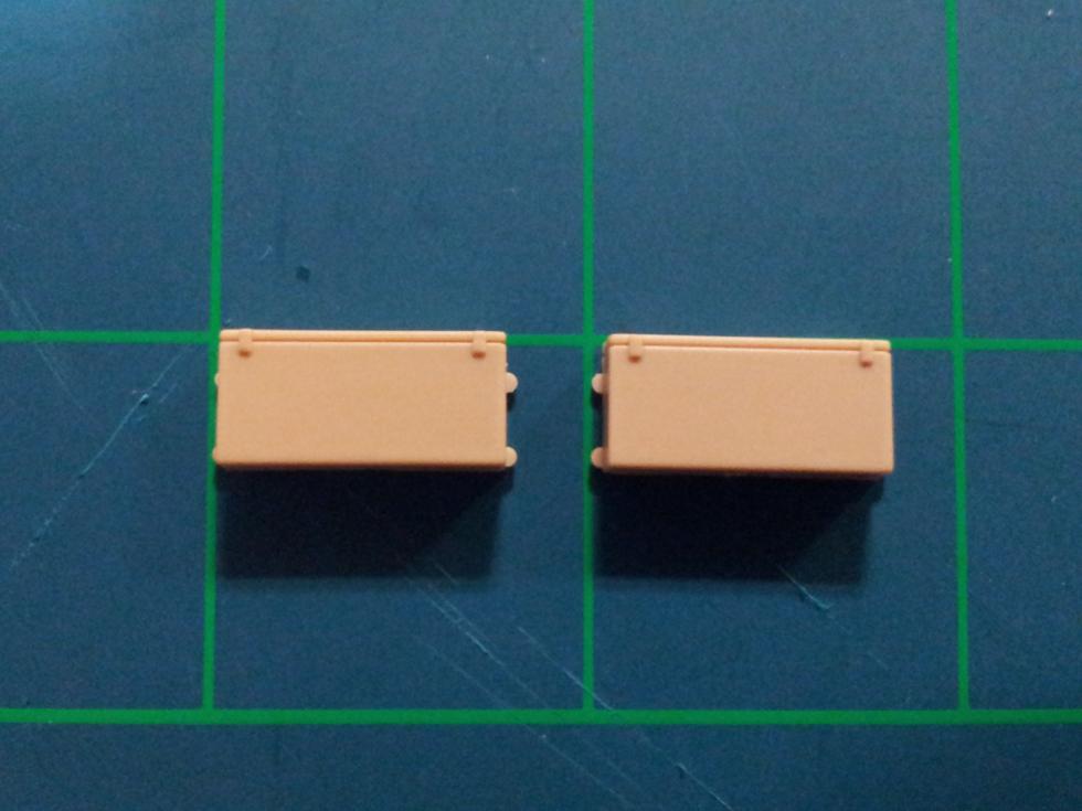 이건 킷트 속의 상자 부품인데, 높이가 좀 낮으므로 뚜껑위쪽에 0.5미리 덧대어 주고, 저 경첩처럼 된 몰드 하면을 따라 잘라내주거나 선파기를 해주면 됩니다.. 윗쪽의 몰드는(패널라인 같은) 퍼티로 메꾸든 어떻게 지워줘야 합니다..