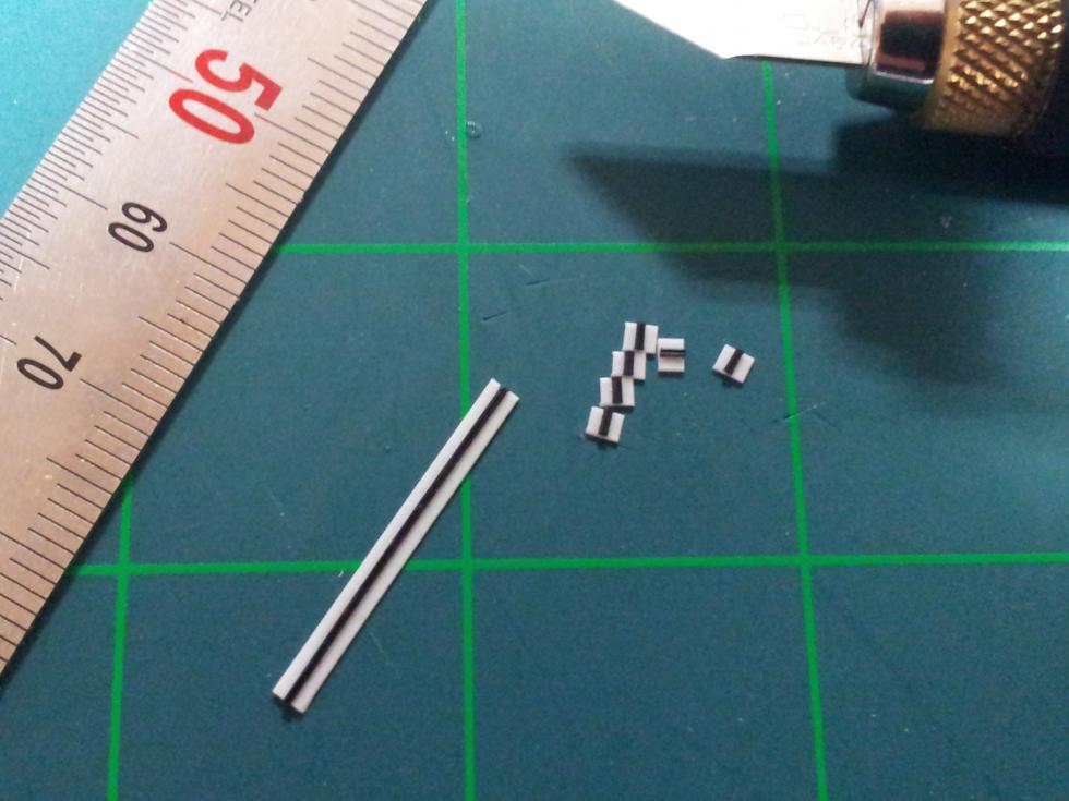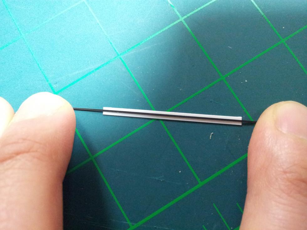 경첩을 만들기 위해 0.3미리 플라판을 2미리 폭으로 자르고 런너를 얇게 늘여 중앙에 맞춰 접착해 준뒤 잘라냅니다 ('0' )