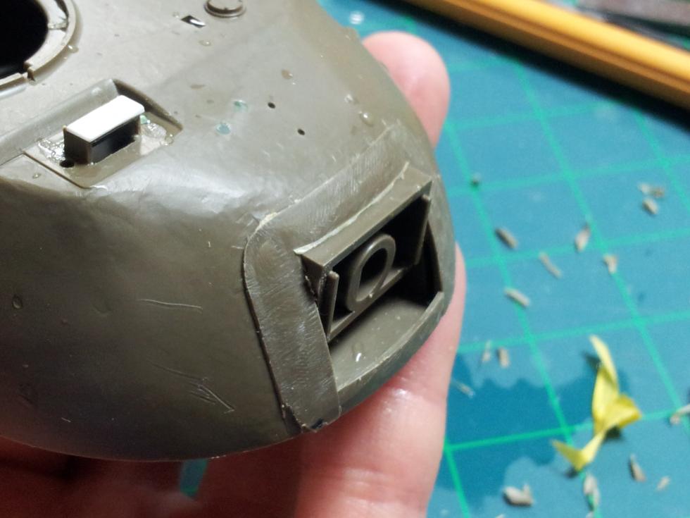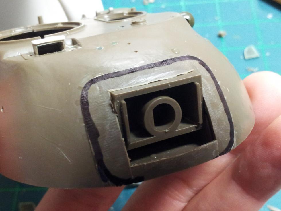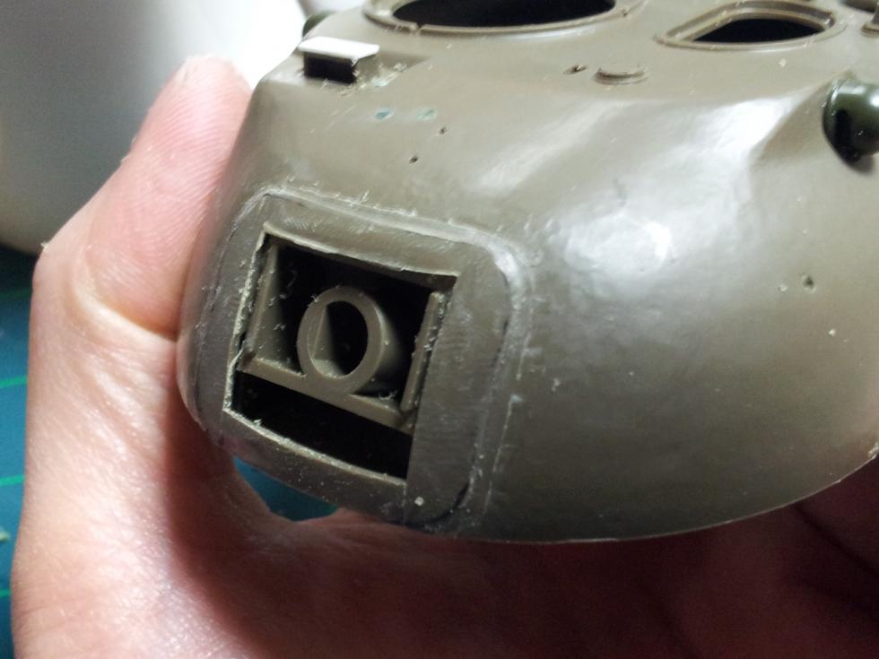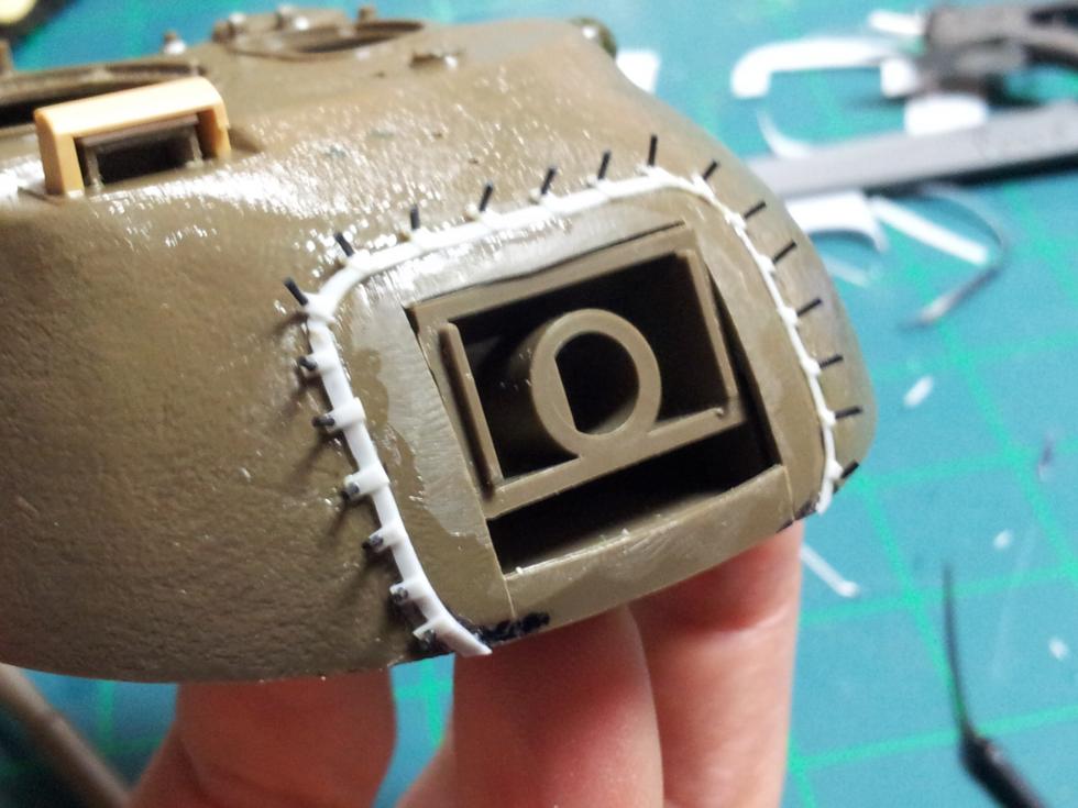 뿔같은 돌기부위도 1미리 정도 하단을 잘라내고 붙여줄 것이며, 기존 킷에서 따낸 눈(?)은 실물에 가까운 느낌으로 붙여 줍니다.. 두꺼운 포방패 살은 깍아내주고 마무리 합니다.. 타미야 M48A3의 포방패는 미간이 많이 넓어 보이는 것 같습니다.. 아무리 봐도.. ('0' );;