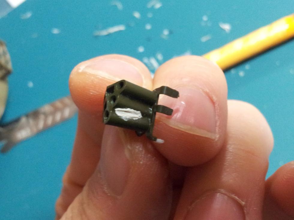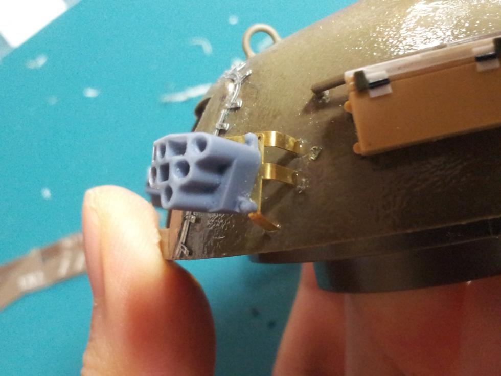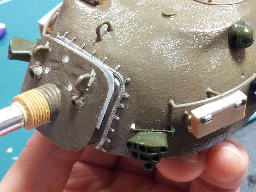 이미 만들어 붙였던 연막탄 발사기도 레진과 에칭으로 바꾸어 주었습니다.. M60용이라 각도는 조금 조절해 주어야 하구요~ 제 취향에 따라 역시 발사기의 안면 부분은 각도를 가파르게 갈아냈습니다 ('0' )
