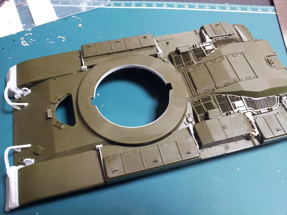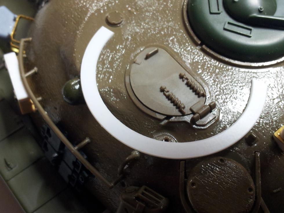다음은 포탑의 디테일을 완성하기 앞서 차체 포탑링을 0.3미리 플라판으로 보강해서 포탑이 꽉물리게 해주었습니다..