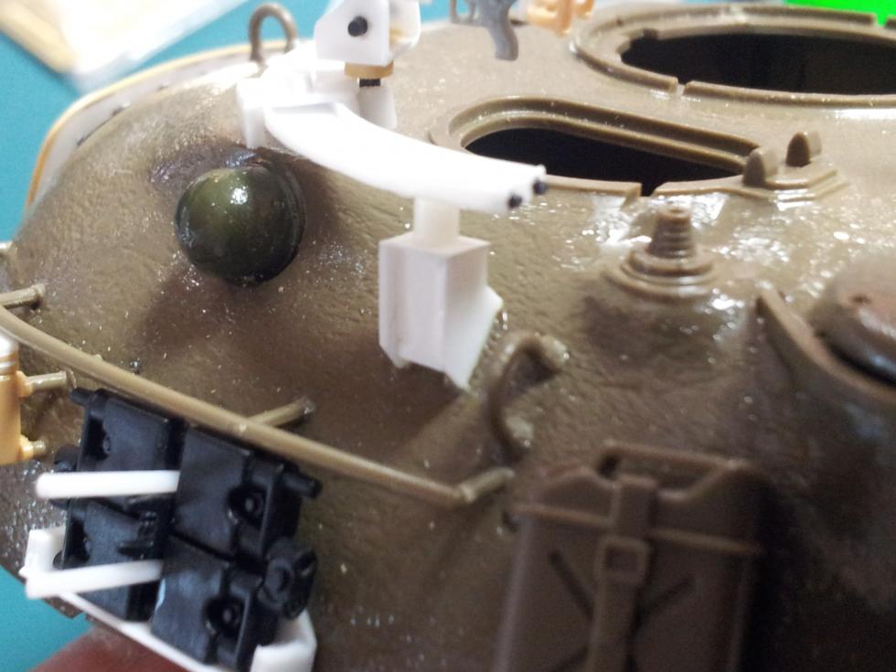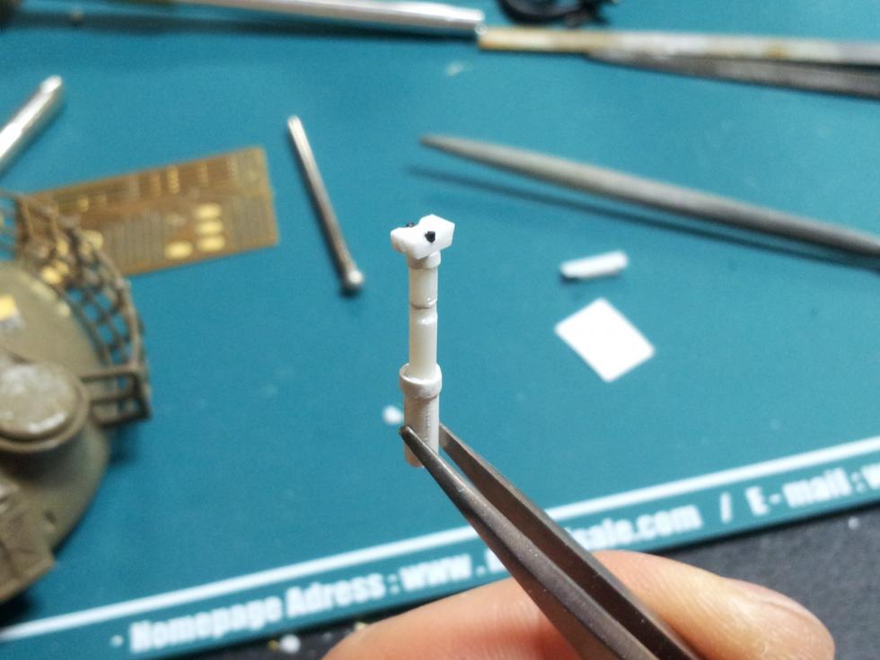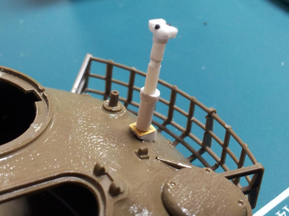 큐폴라에 중기관총 거치대를 만들고 큐폴라 옆에 있는 철봉(?) 같은 부분도 1미리 플라봉으로 붙였습니다.. 뭐에 쓰는건지는 모르겠네요 ㅎㅎ