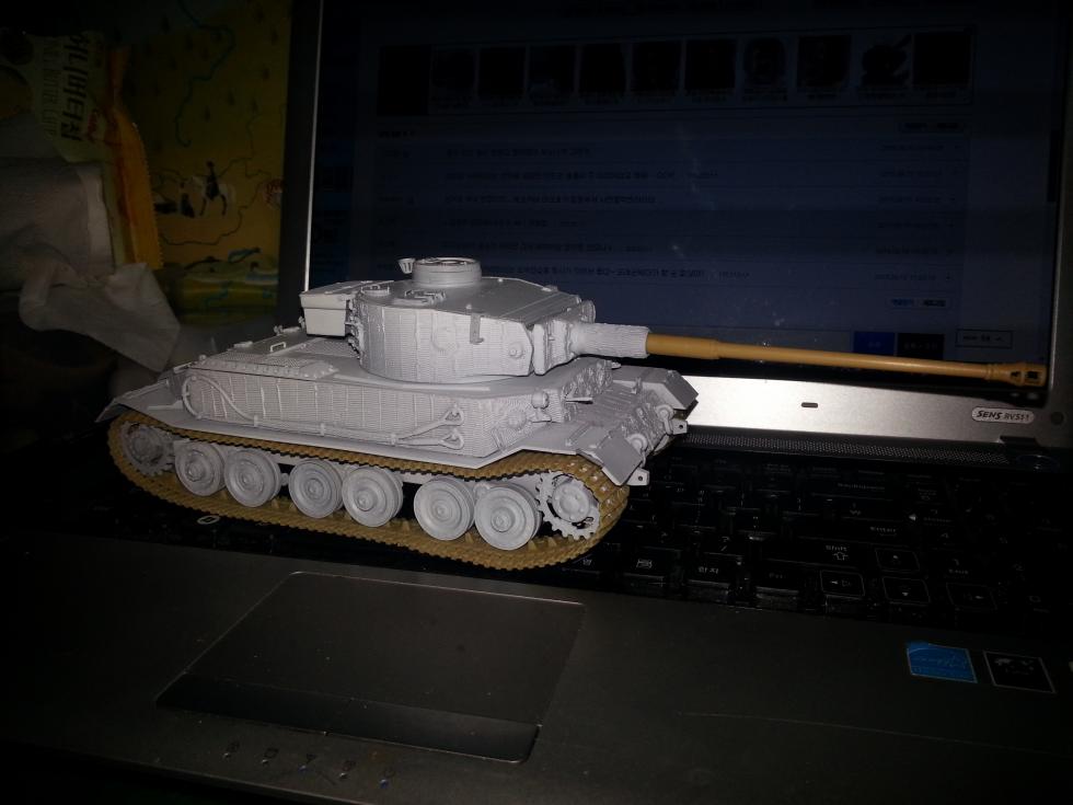 몇달 전 고니님께 구입한 포르셰 티거의 근황은 대락 이렇습니다. 원래는 고증과 실차 사진대로 653 장갑엽병대대 소속의 003호차 야겠지만.. 치메리트를 하필이면 어찌하다가 엘레판트의 치메리트 패턴을 사용하게 되어 졸지에 다른 차량이 되어버렸습니다.덕분에 서페만 뿌리가 한달 정도 방치하다가 베를린 공방전 당시 교외에서 포르셰 티거가 8.8cm 71구경장을 달고 전투에 참여했다가 소련군에 의해 격파되었다는 소리를 들었습니다. 아쉽게도 사진은 없다더군요. 물론 뜬소문에 불과하겠지만 이 녀석을 완성시키려면 달리 방법이 없기에 아카데미 킹타이거의 주포를 달아주었습니다. 의외로 어울리더군요. 여기에 측면에 예비궤도나 드럼통이나 제리캔을 달아주고 대공방어 장갑을 엔진 배기구 부분에 얹어주면 그럴듯한 녀석이 나올 거 같습니다.
