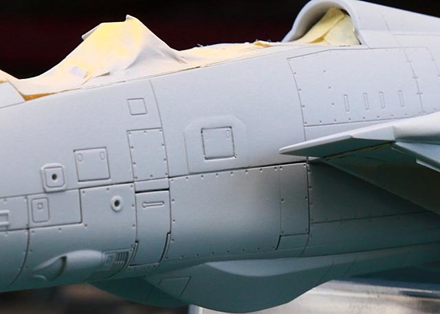 이 키트의 가장 큰 문제점인 어깨죽지(?)와 RWR 안테나의 형상도 수정해준 모습입니다.