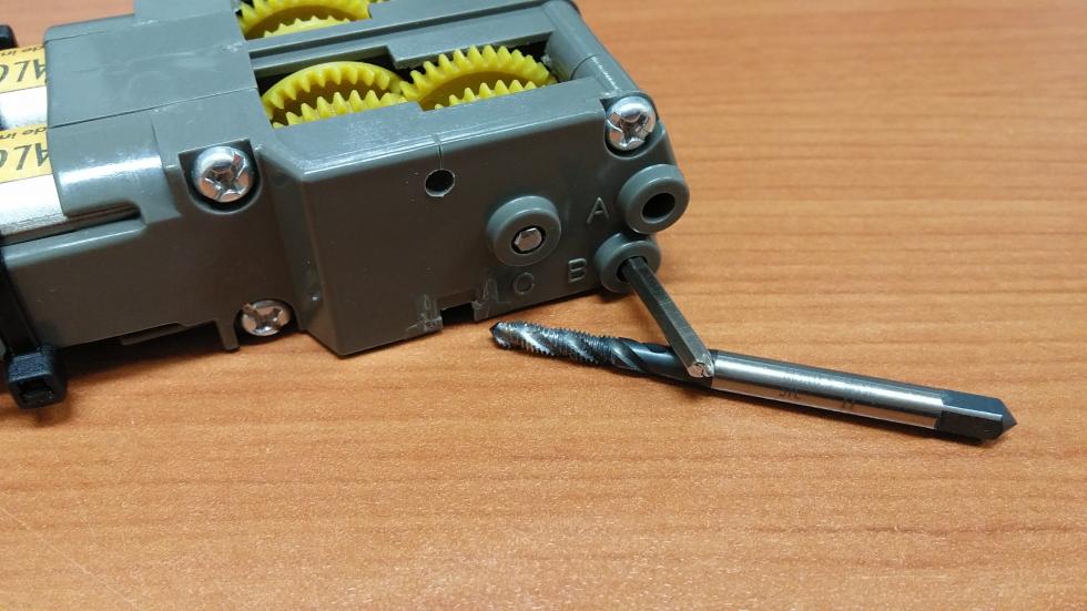 3mm 볼트탭을 준비해서 M3 나사산을 만들어 줍니다.