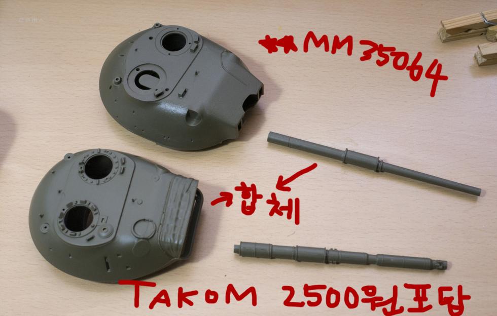 타콤포탑과, 타미야 포를 섞어줍니다. 저 타미야 포를 저렇게 곧추세우기 위해 많은 시간을 들였습니다.