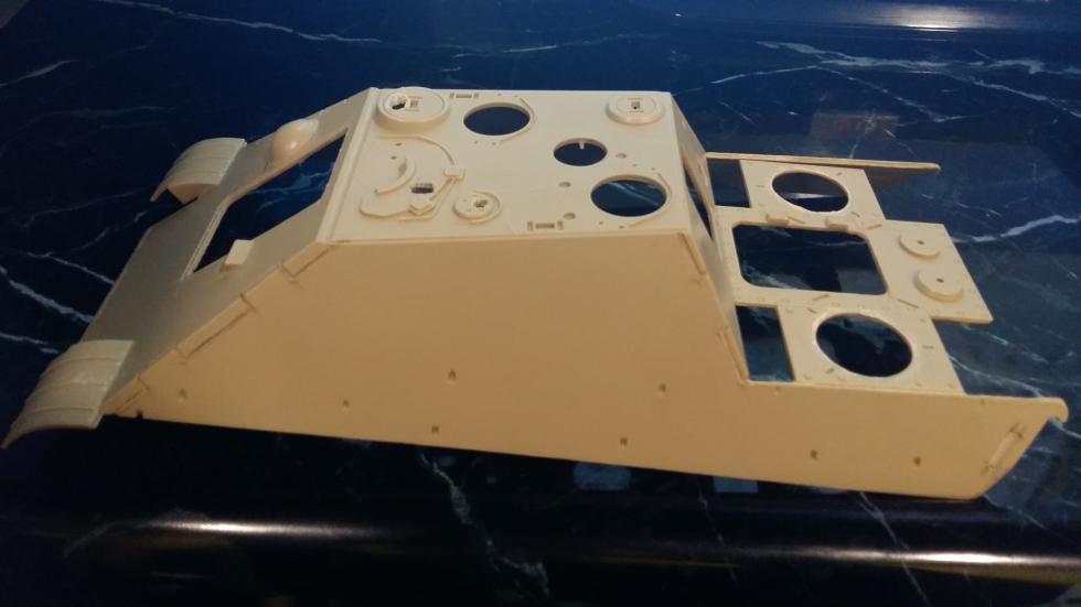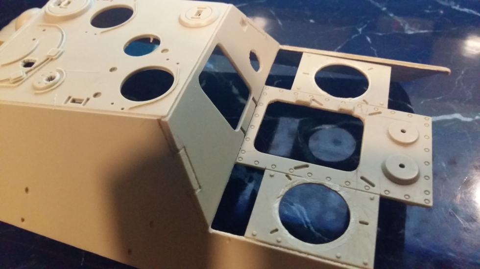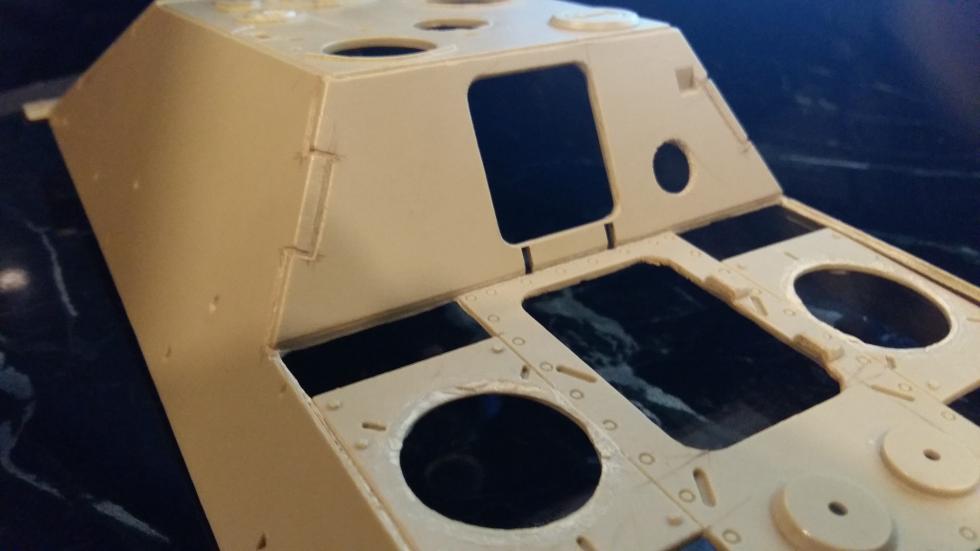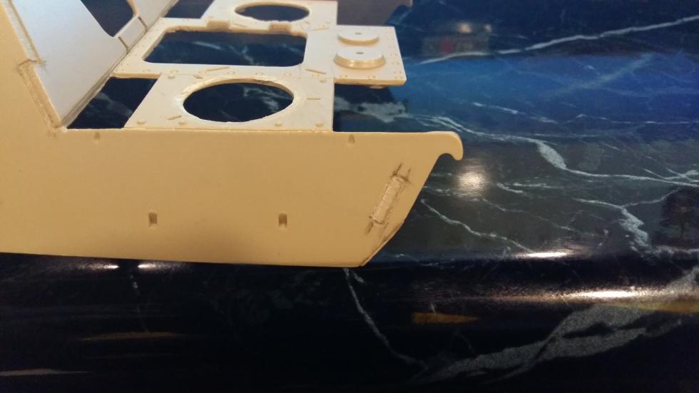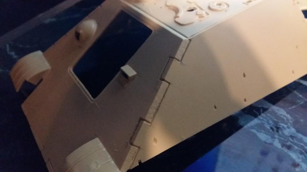 사진에서는 잘 나타나 있지 않지만 전면 장갑판 맨위 끝단이 키트에서는 삼각형 형태로 각이 져 있기 때문에 실차처럼 이중 형태로 만들어 주기 위해 커팅을 해주었습니다.