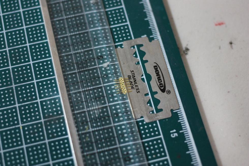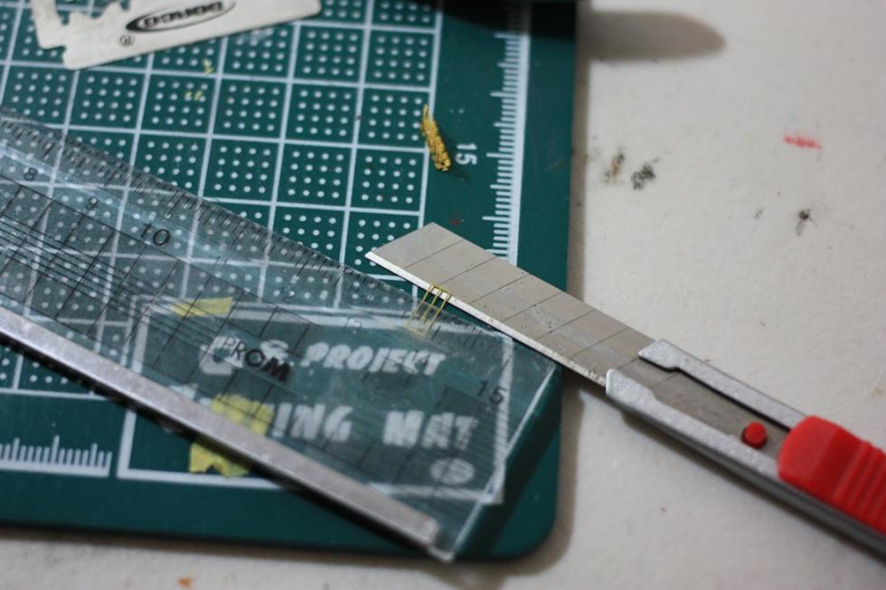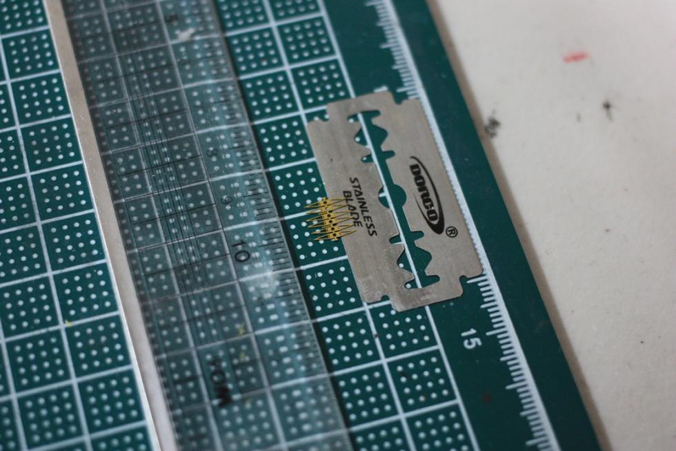 에칭을 잘라서 면도날에 살짝 걸쳐둡니다