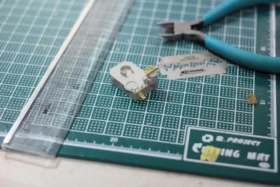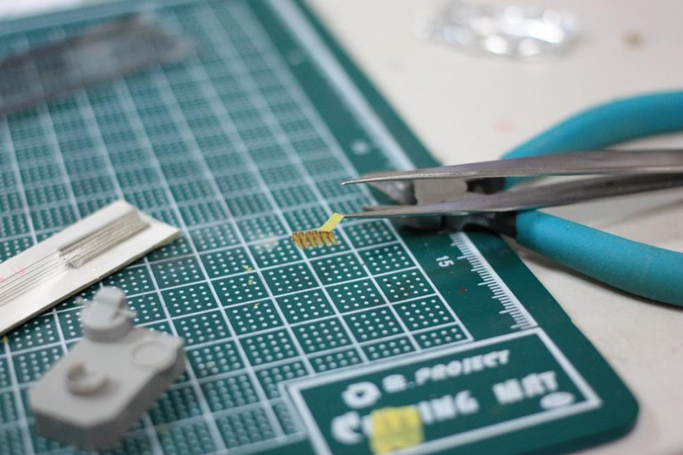 니퍼와 커터칼로 잘라내고 에칭이 커터칼에 쉽게 잘리더군요(원래 잘리긴 하지만 정말 두부 자르는거 같음) 이키트의 에칭은 구리가 아니라 납으로 되어있는게 아닌지 의심될 정도로 심각하게 무릅니다.