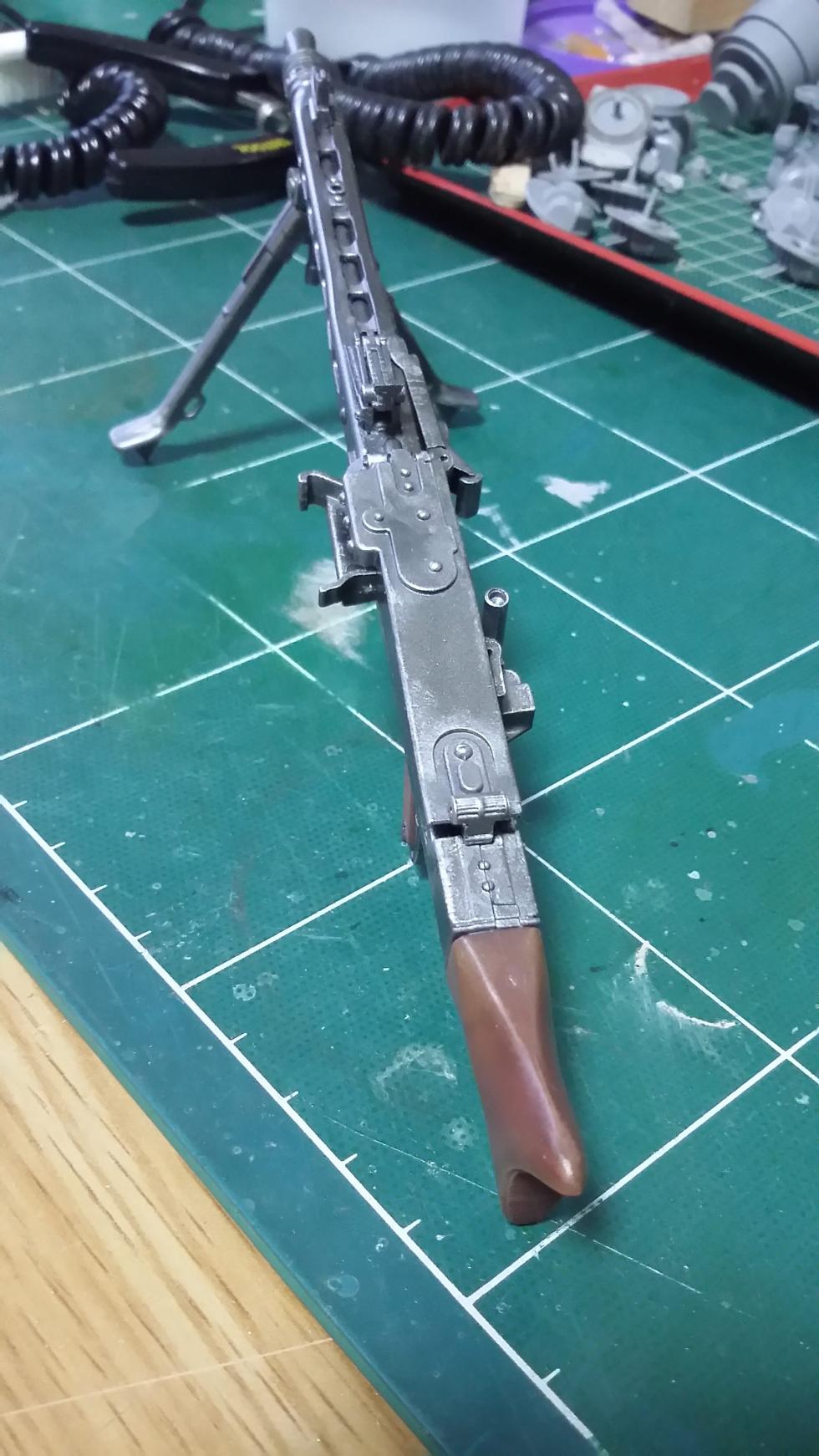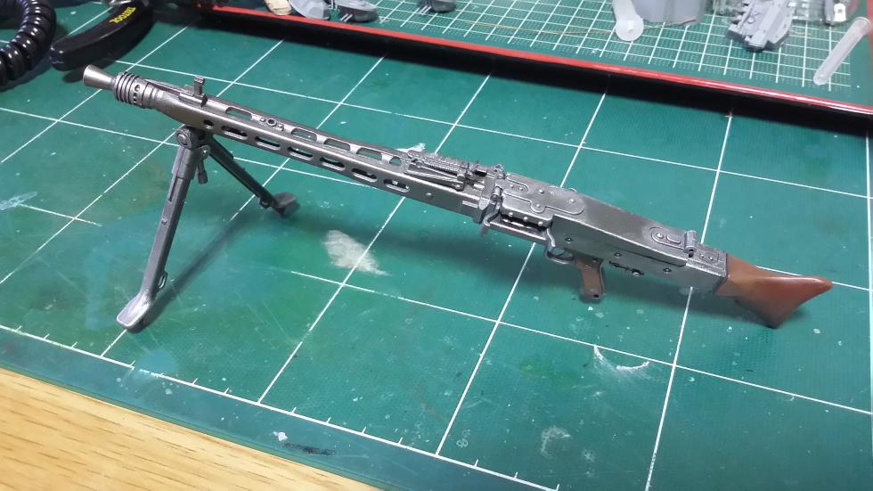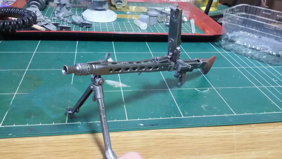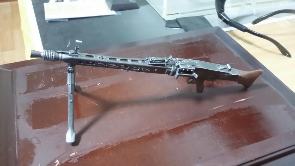 어제받은 MG 42를 도색하고 웨더링을 해줬습니다. 총색상이 너무 진해서..좀 연하게 새로 도색을 해주고, 적당히 웨더링..
