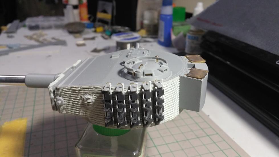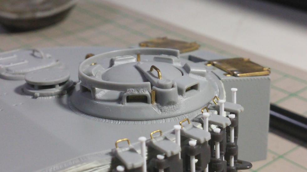 큐폴라, 포수 관측구 용접선 재현. 프라페이퍼를 가늘게 썰어서 무수지를 적당히 바르고 흐물흐물해졌을 때 얇은 조각도로 꾹꾹 눌러 재현했습니다.