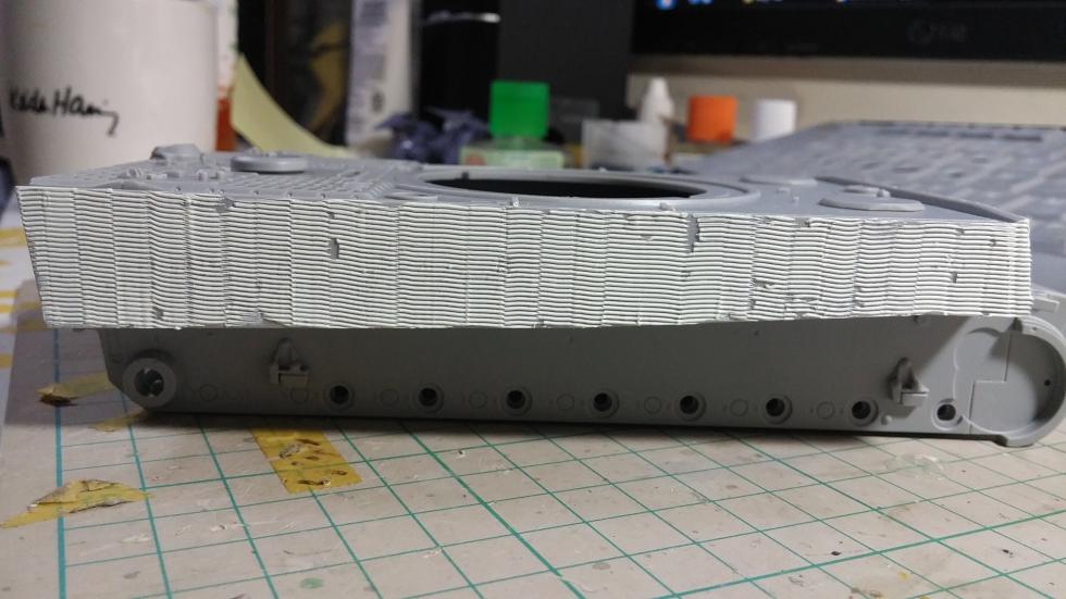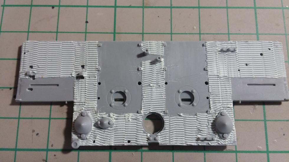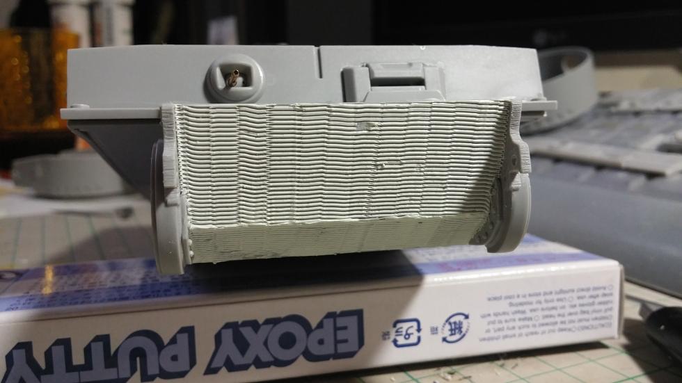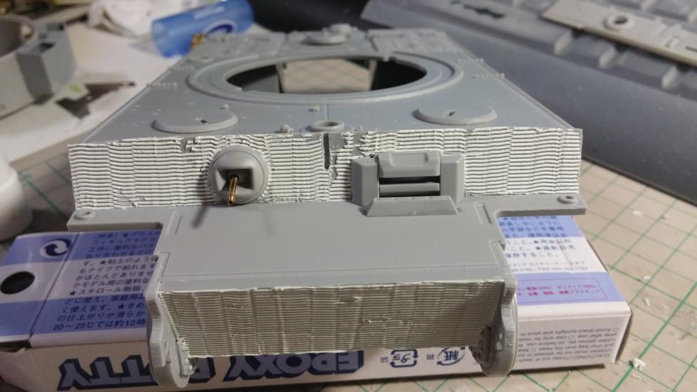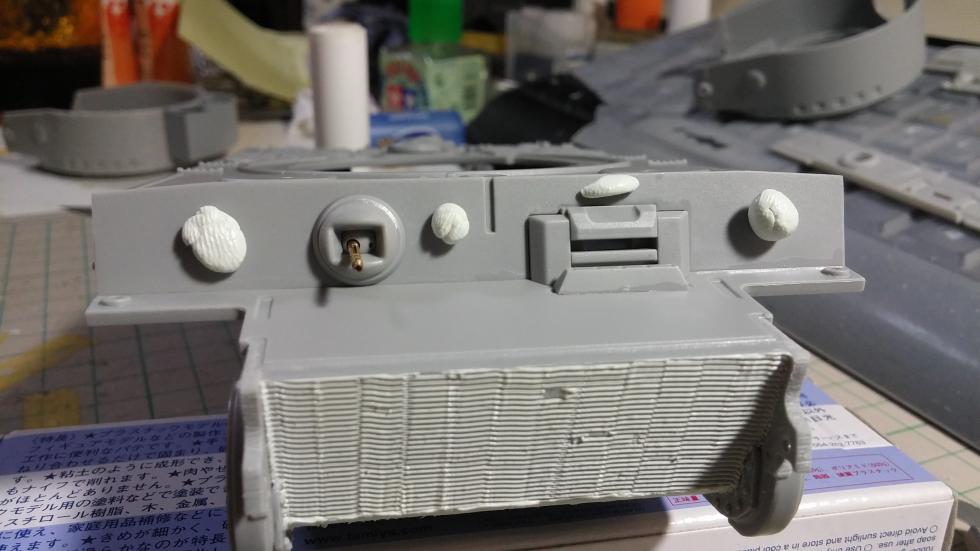 찌메리트 코팅을 위해 네모난 마운트를 모두 잘라버렸으므로 킷에 있는 휀더 부품에 구멍을 뚫고