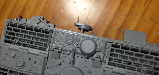 또, 그릴 안쪽 부품들을 도색하기 위해서 도색 완료시까지 차체 상하판, 차체 전면장갑등을 접착하지 않고 두어야 하는 문제 등도 겹쳐서..