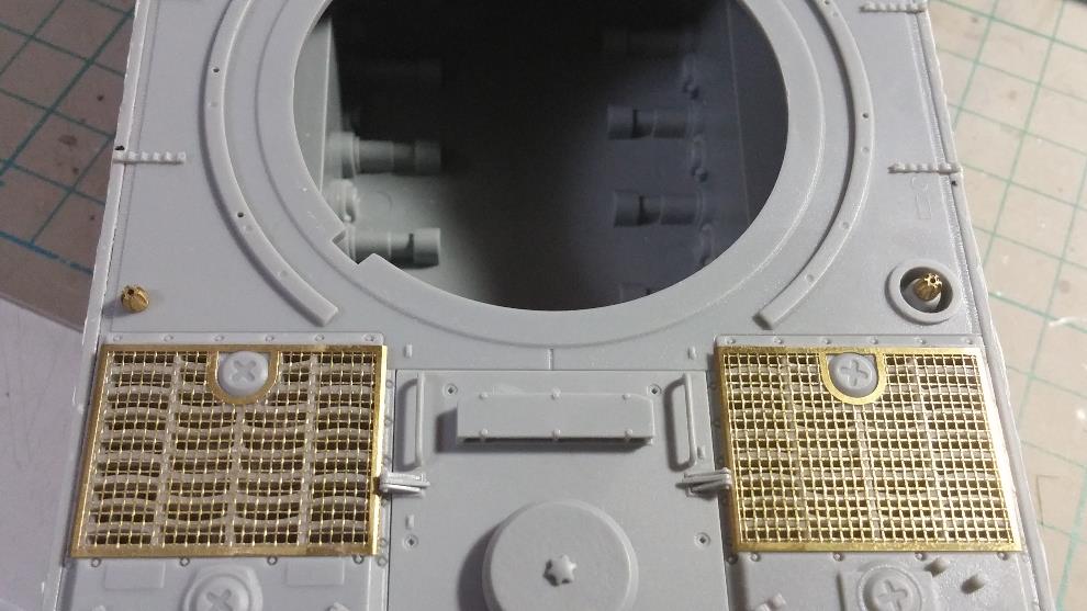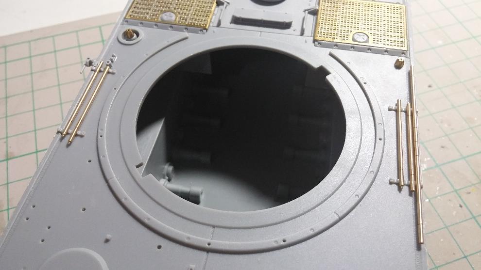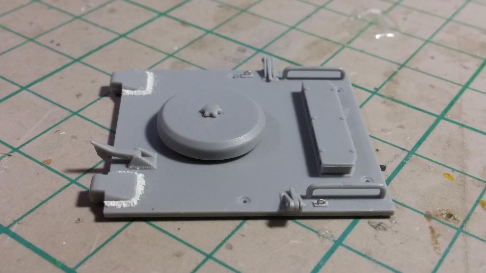 차체 상판 오른쪽 안테나 마운트. 이 부분은 안테나 마운트만 재현하고 안테나는 붙히지 않습니다.