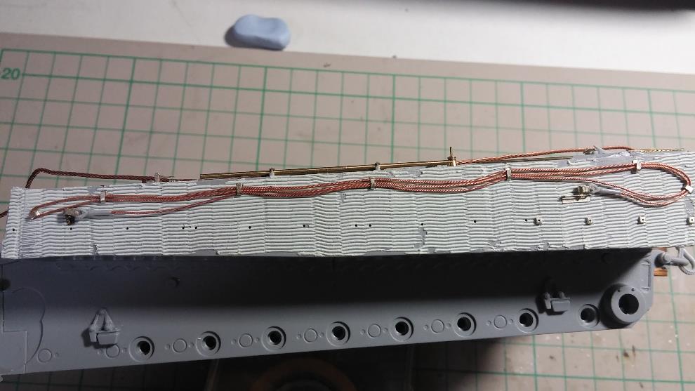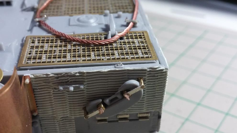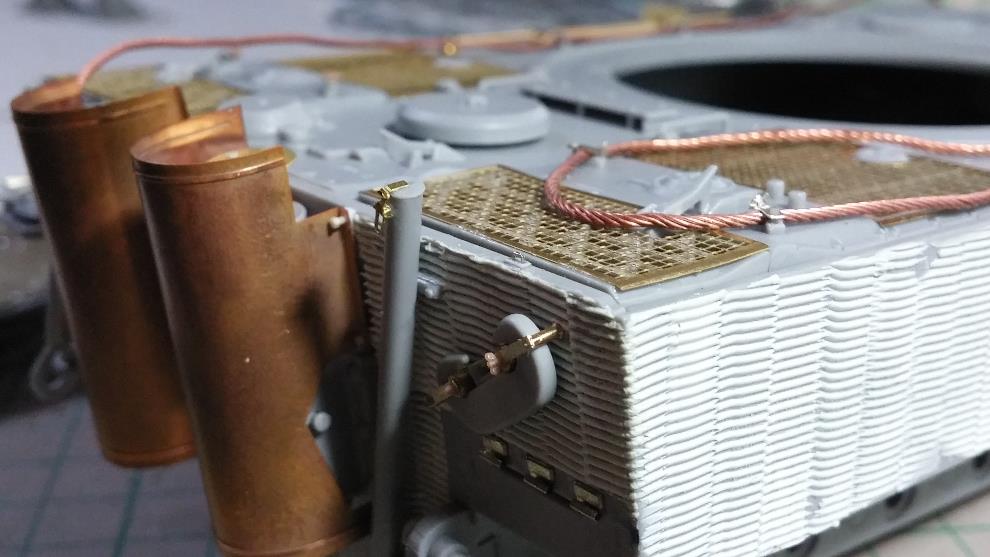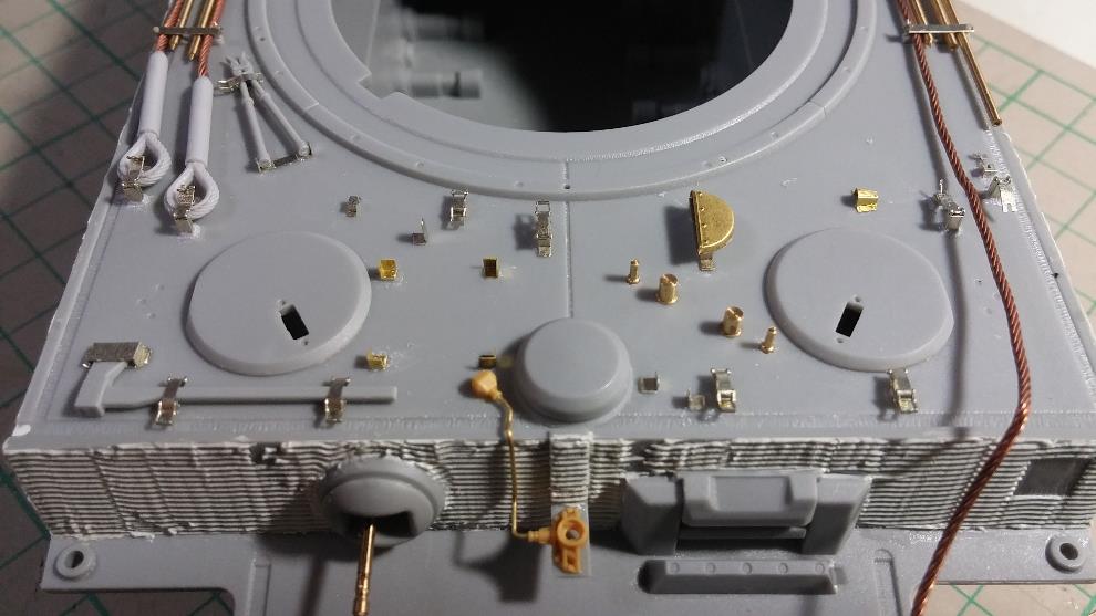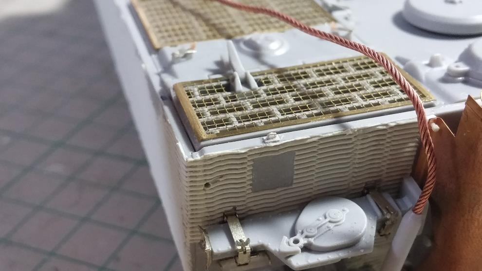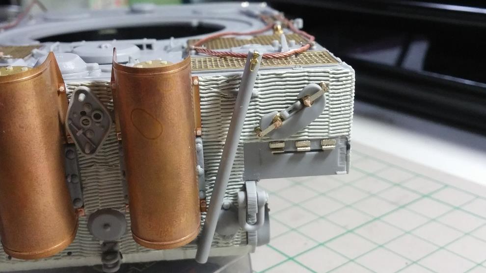 차체 오른쪽에 궤도 교체용 케이블 부착을 위해 위치를 잡아서 찌메리트 코팅을 벗기고 에칭을 붙혔습니다.