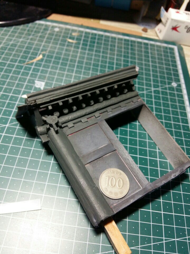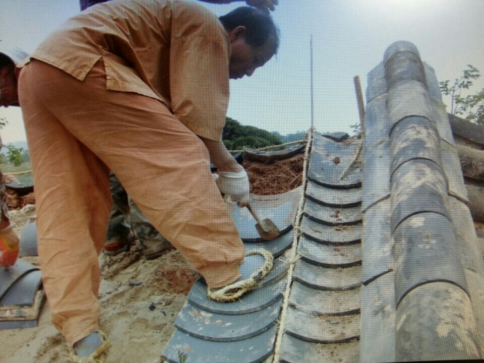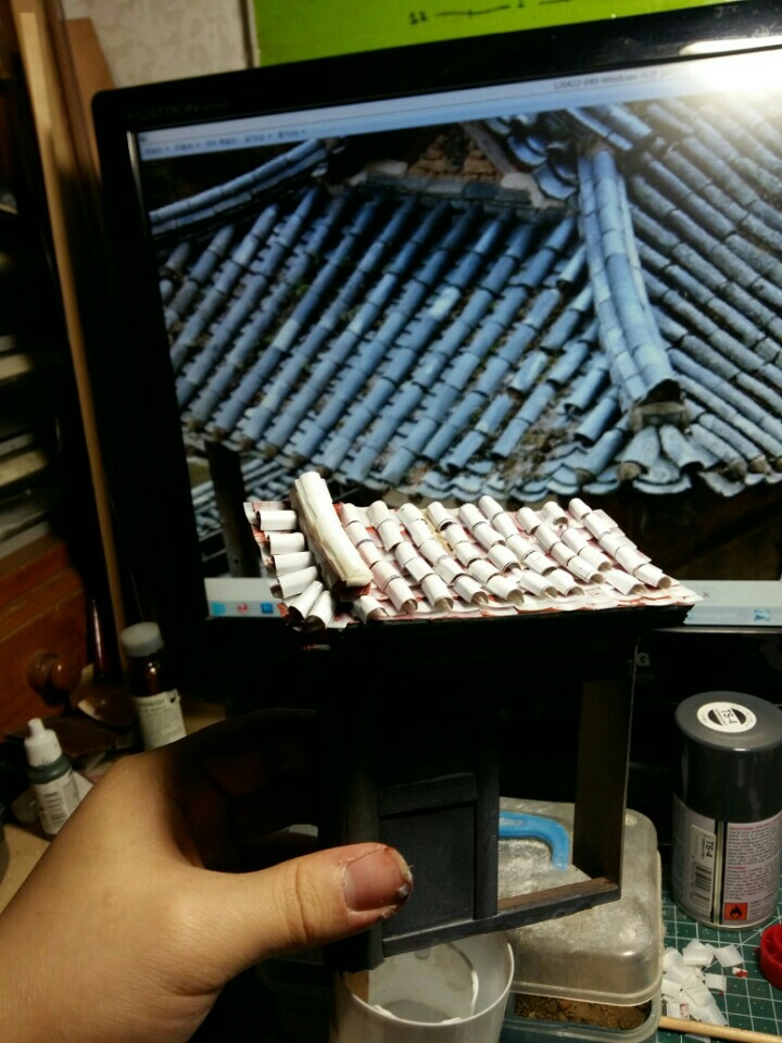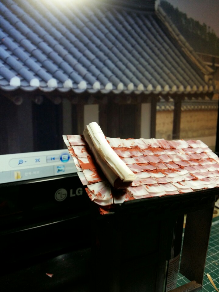 반듯한 기와가 아니라 관리를 못해서 흩어진 느낌을 재현하려고 했습니다.