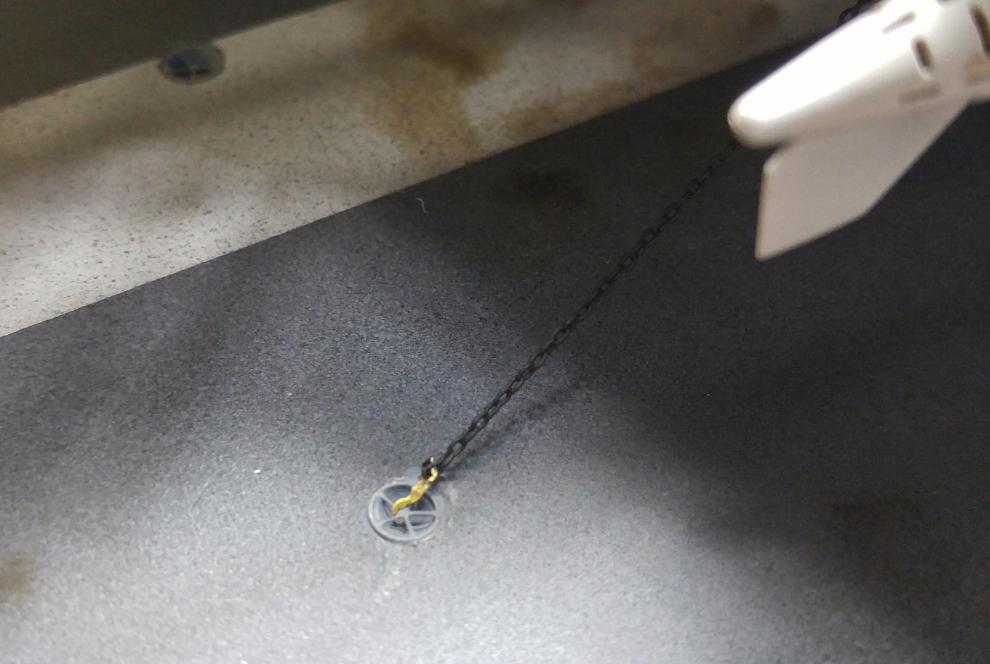이 제품이 나오기 전에는 가느다란 철사를 구부려서 랜딩기어에 구멍을 내준 후 고리로 만들어 넣었습니다.
