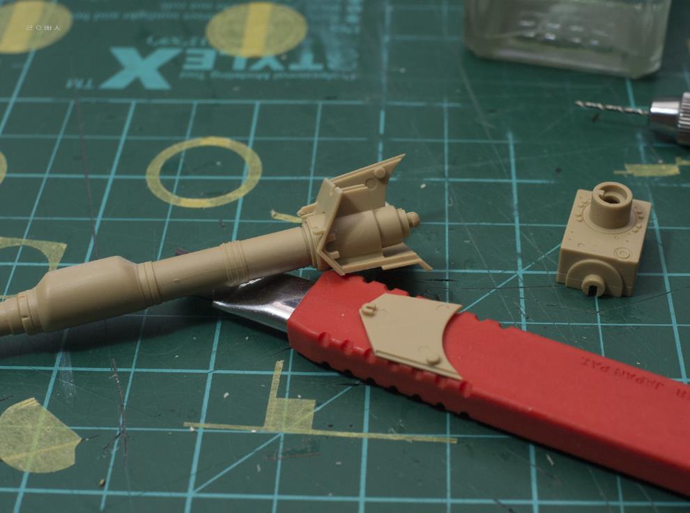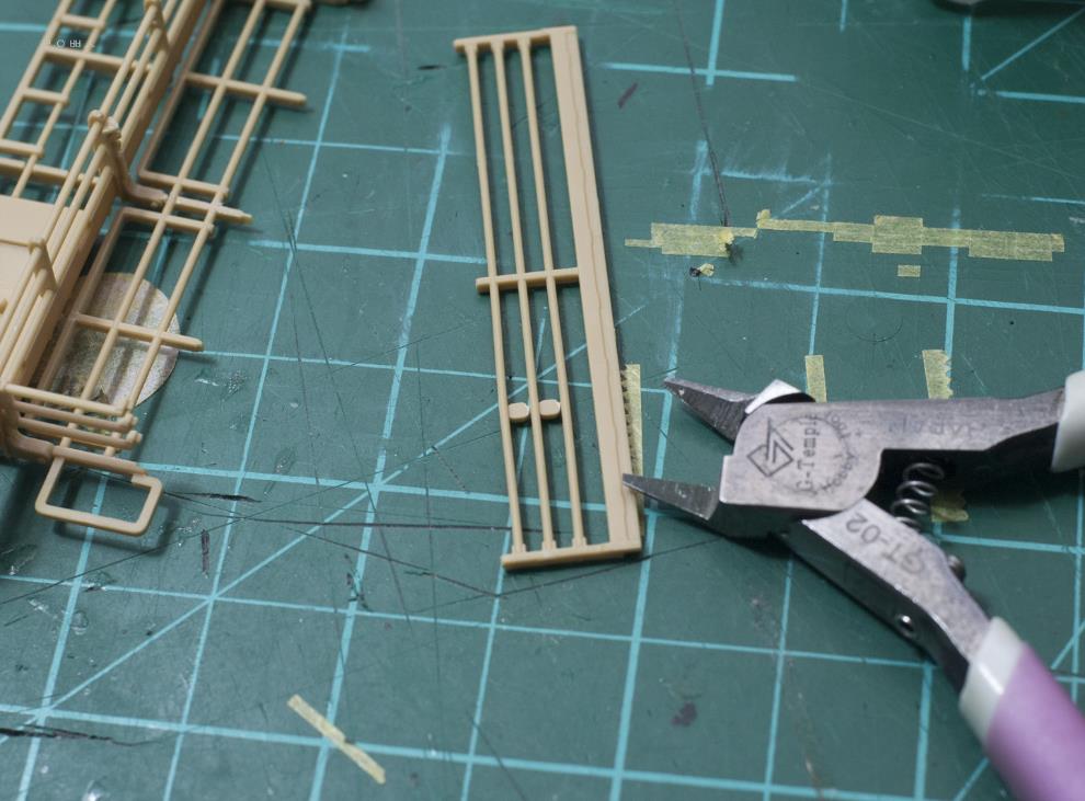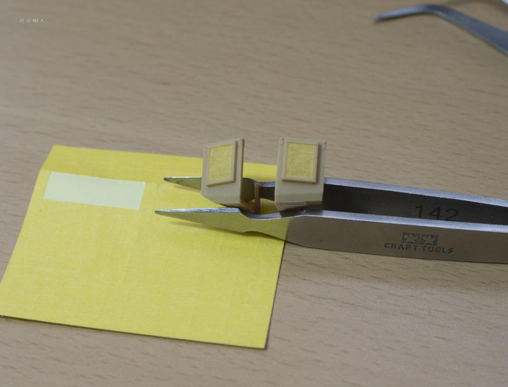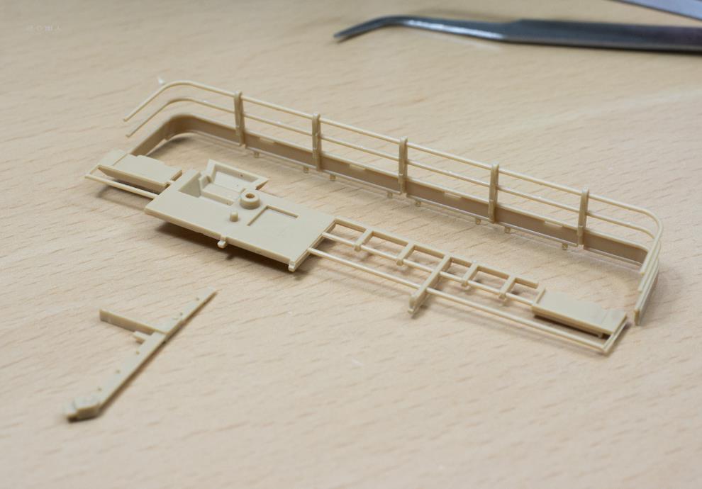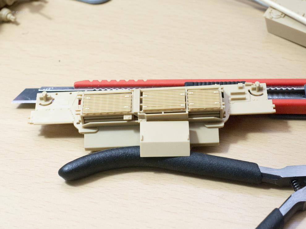 배연기 방향을 바꾸는 덧씌우개 손잡이는 타미야처럼 판대기 하나로 간략화했고, 엔진그릴에 부작하는 사각형 틀(어댑터)이 있는데, 생략되어 있어서 재현을 시도하려다 괜한 부품만 잘라먹었습니다.