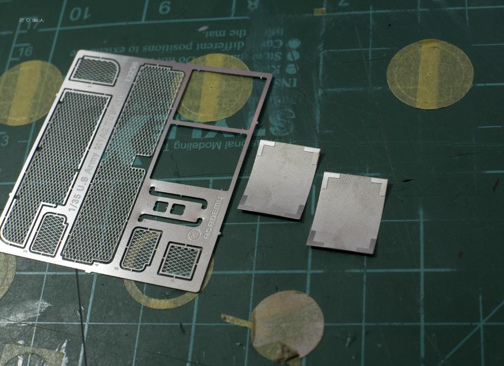 에칭도 한숨만 나옵니다. 두꺼운 금속판을 정밀하게 가공하여 입체감 있는 철망과 피아식별판을 재현한 것은 좋은데,