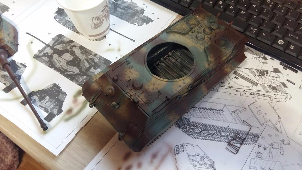 문제의 킹 타이거 ....웨더링을 한다는 것이 요령없이 이것 저것 막 바르다 보니 꾀죄죄하게 변했습니다.... ㅜ.ㅜ