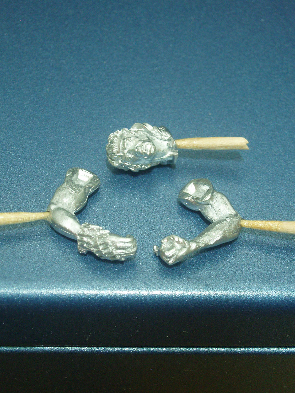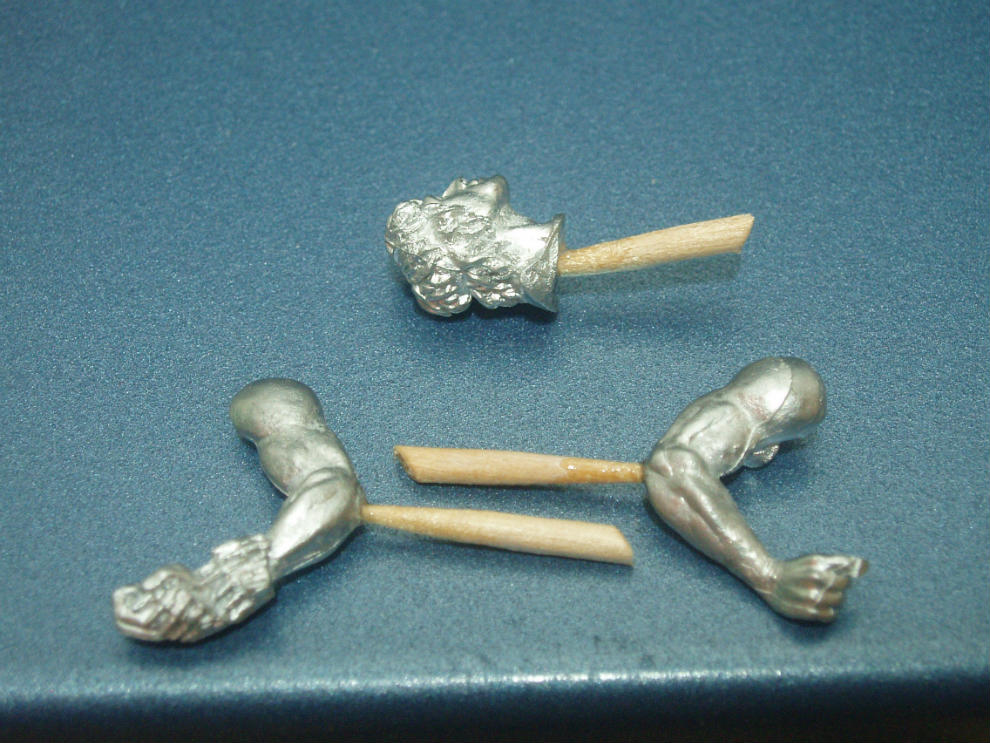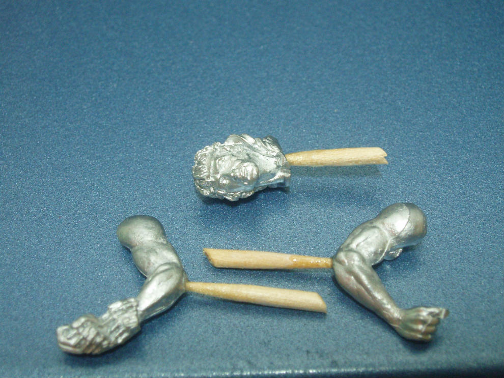 머리의목부분, 왼팔,오른팔에 이쑤시게 게이트를 만들었습니다