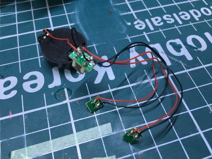 왼쪽 흰색 플라스틱 부품이 살짝 어긋나게 되었는데, 후에 수정해주었습니다.