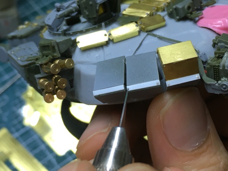 그러려면 키트에 뚫려있는 부분을 메꾼다음 에칭이 들어갈 수 있도록 작은 구멍을 뚫어주어야합니다.