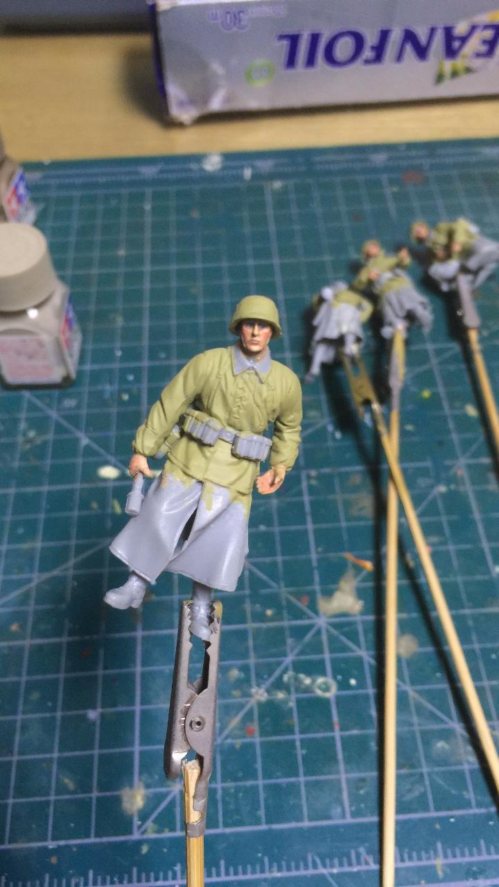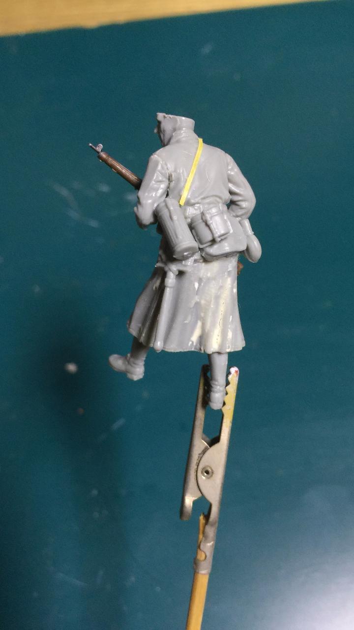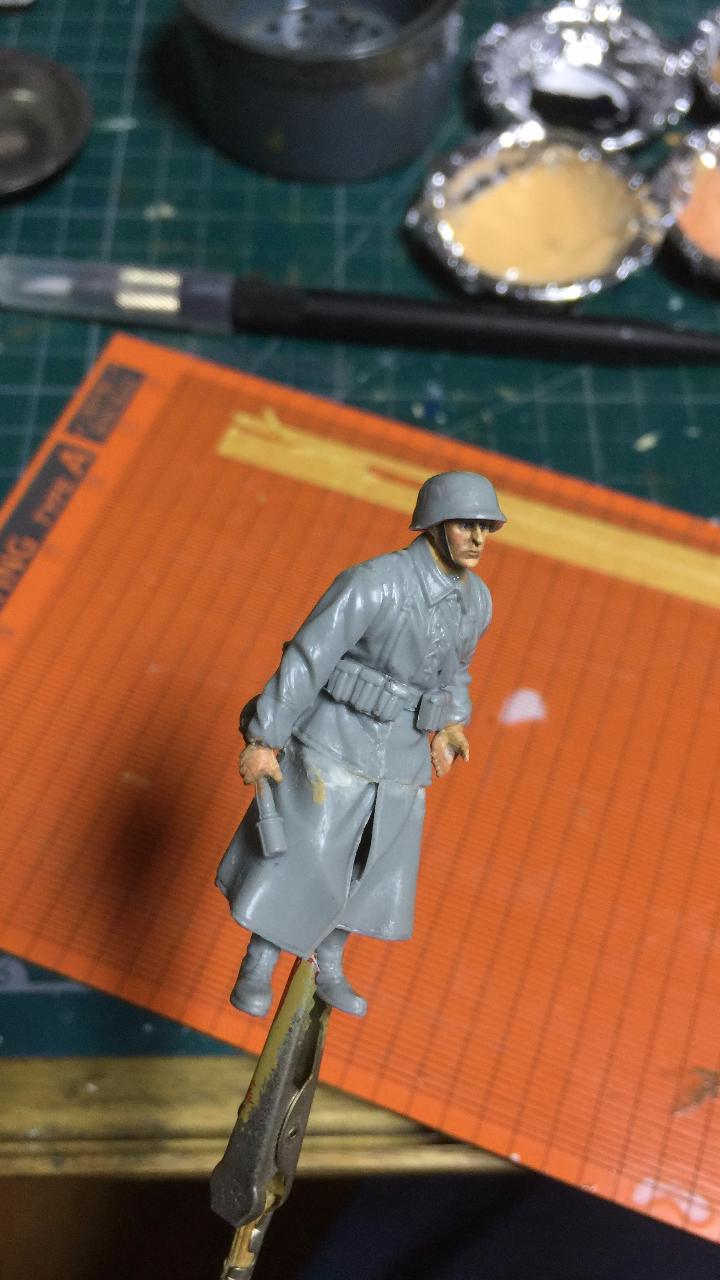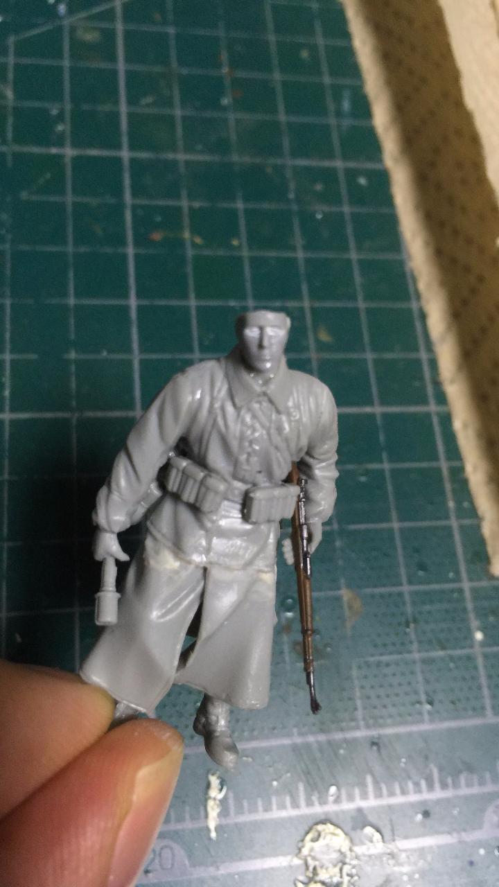 먼저 인형조립 사진입니다. 이 제품의 경우 특징이 먼저 병사들이 벨트에 수류탄을 끼워넣은 상태를 하고 있는 점과 겨울이 다가오는 시점이라 코트를 착용하고 있어서 조립과정에서 이에 대한 작업이 좀 필요합니다. 먼저 수류탄은 잘라서 위 아래 이어 붙이기를 하는 방법도 생각을 해봤는데 아무래도 좀 자연스럽지 않은 것 같아서 핀바이스로 구멍을 뚫고 줄로 넓힌 후 수류탄을 끼워 넣는 형태로 재현을 해봤습니다. 좀 번거롭긴 하지만 그래도 이렇게 하면 조금 자연스럽게 되는 것 같네요. 코트의 경우에는 퍼티 작업도 해줘야 하고요.