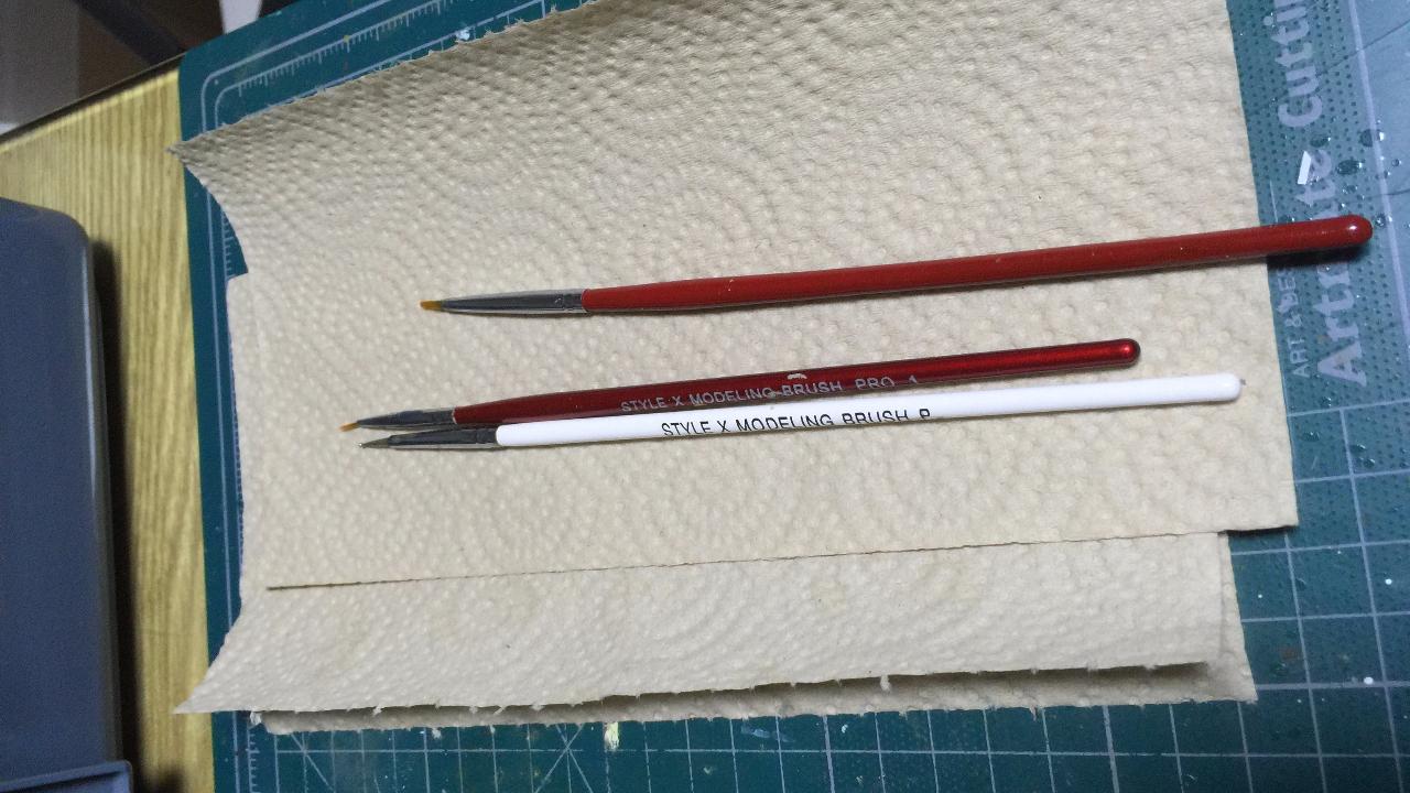 붙은 0호붓하고 1호붓 두 자루만 가지고 다 합니다. 밑에 있는건 눈을 칠하는 철필 같은건데 1/35 스케일 인형에서 눈 칠하기에는 너무 커서 한 번도 사용을 안 해봤습니다. 그런데 이렇게 글을 쓰면서 생각해보니 위장복 무늬 동그란거 찍을 때 쓰면 편하겠네요. 이 생각을 왜 못했지 ㅋ